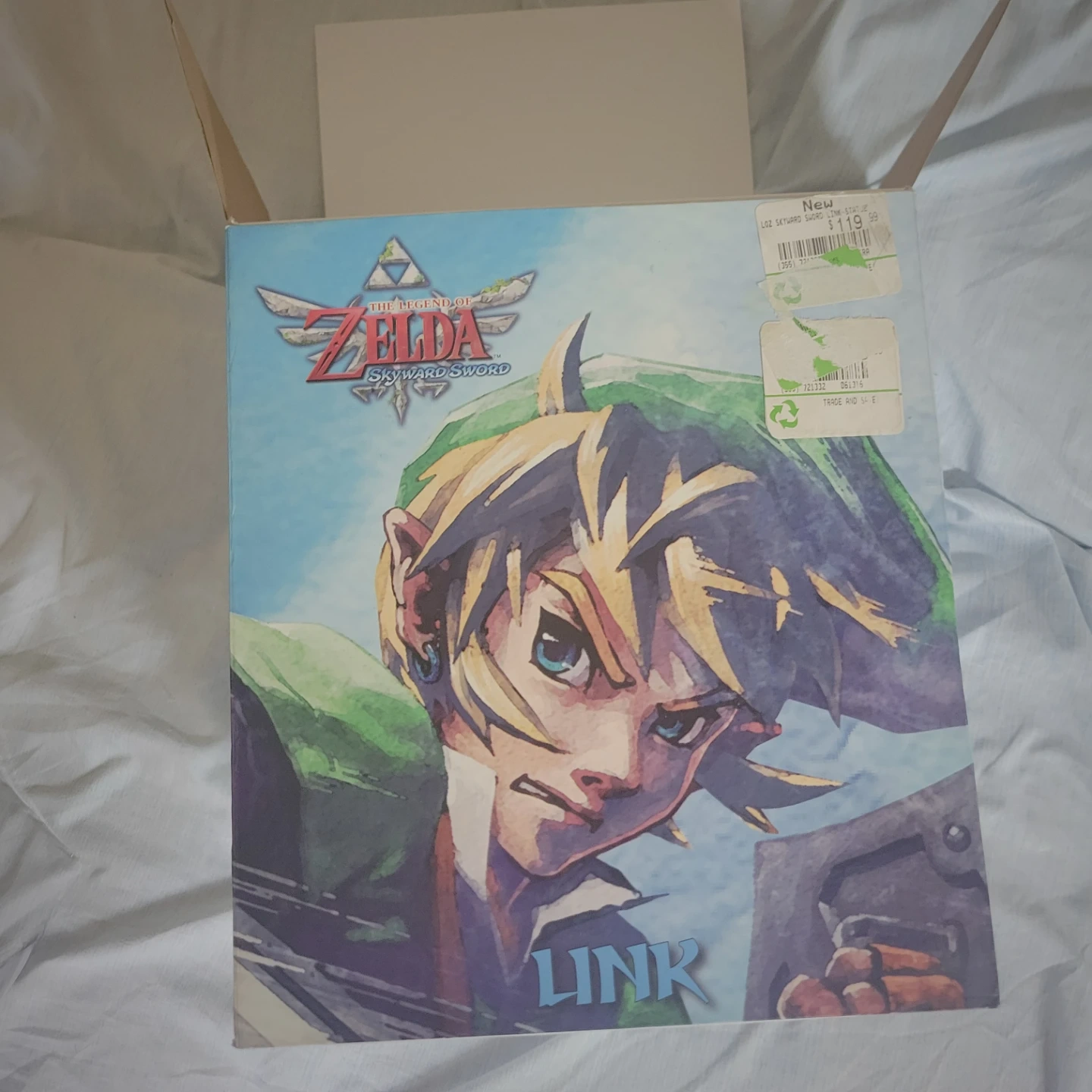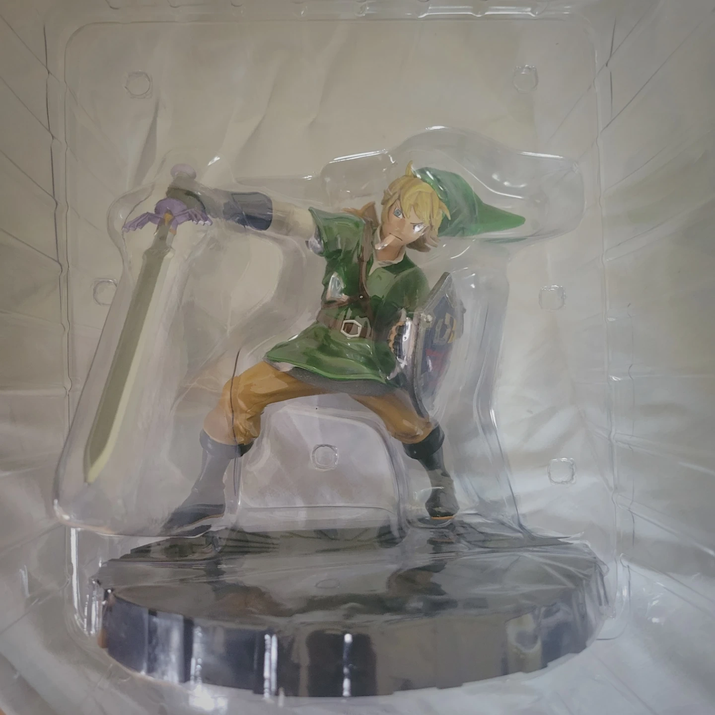 New Legend of Zelda Skyward Sword Link statue. This is a collectible item featuring the character Link. It's in its original packaging, ready for display. I am pretty sure it has a defect though.