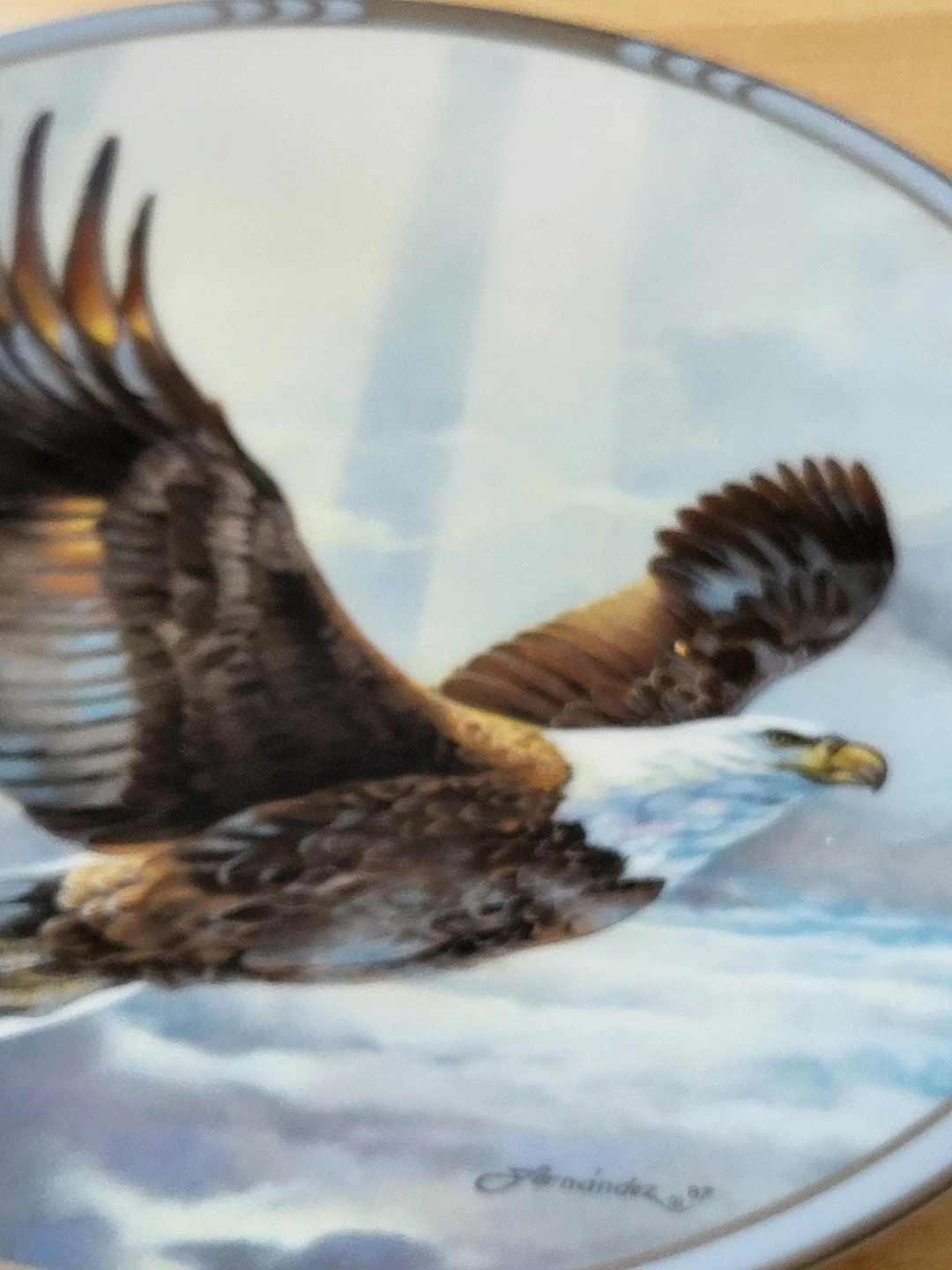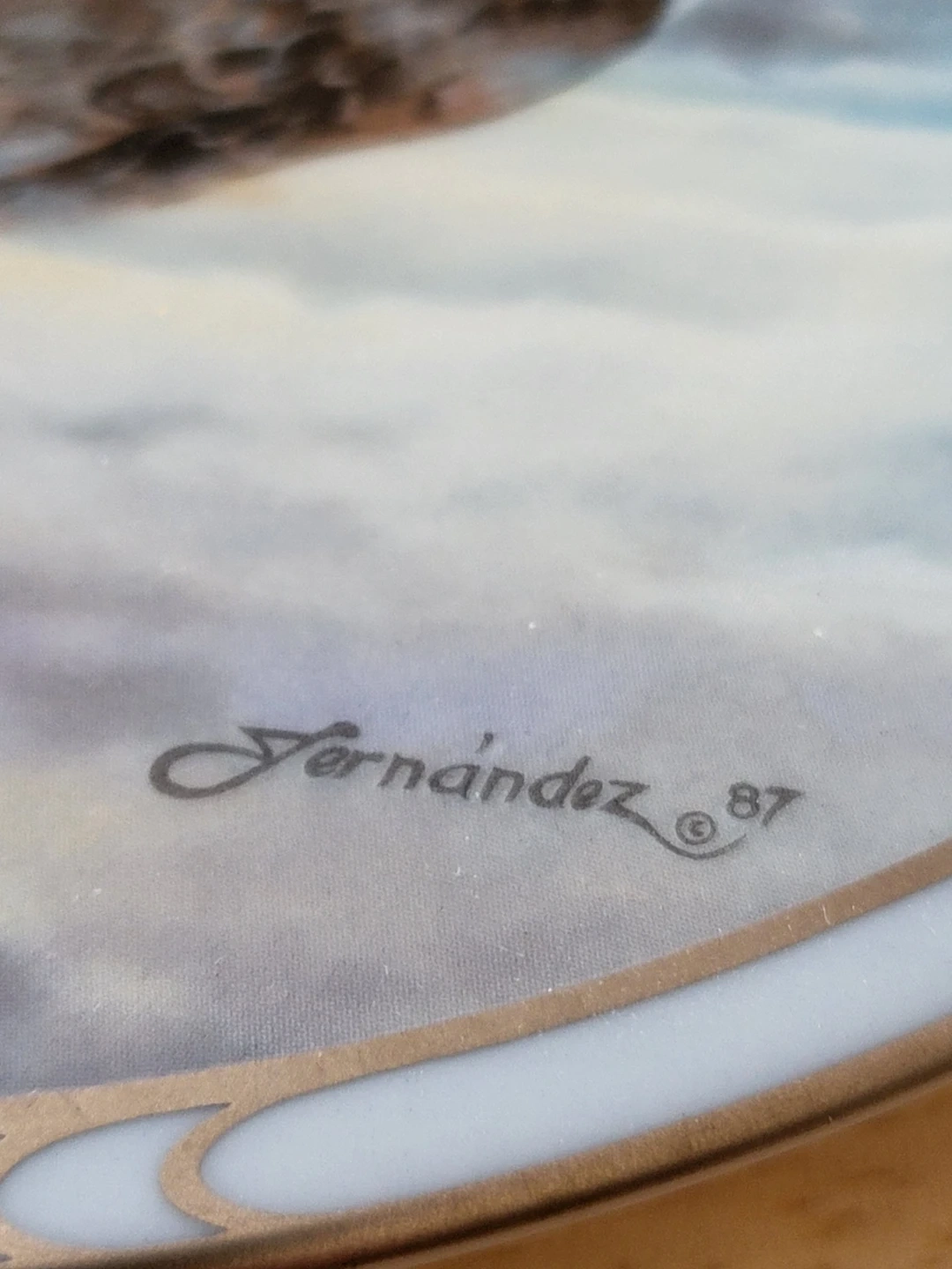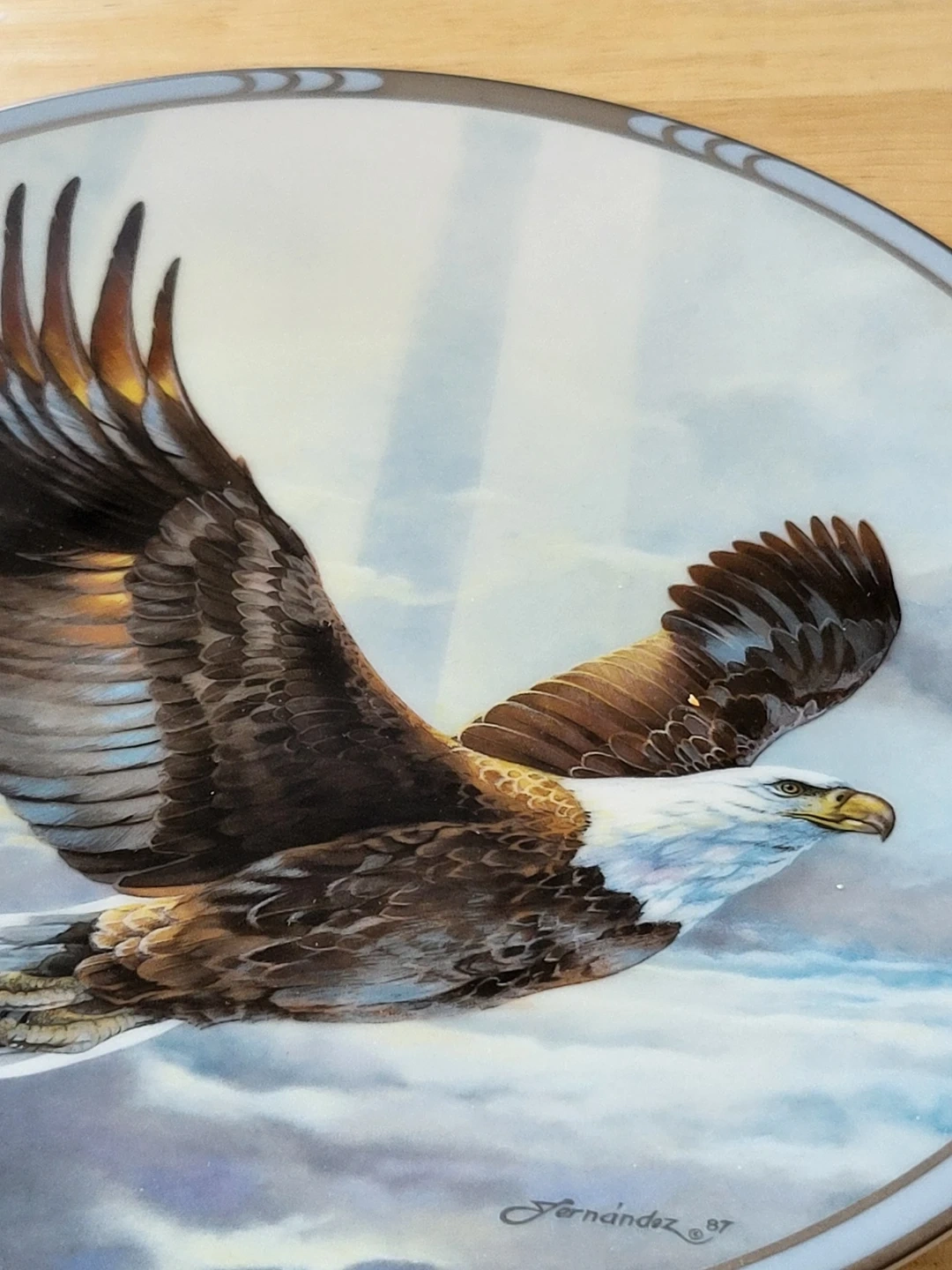This decorative plate features artwork by Mario Fernández, titled 'Rise Above The Storm And You Will Find The Sunshine'. It is from the 1988 Eagles Club Membership edition, plate number C 6066. Produced exclusively for the Hour of Power by The Fountainhead Corporation in 1987.