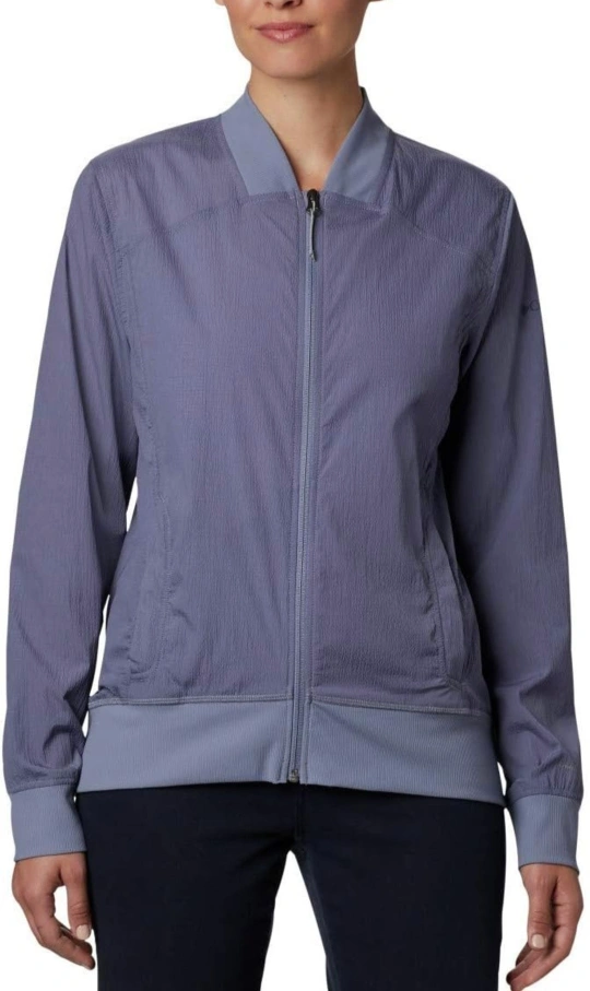 Selling a Columbia Bachy Butte women's jacket in size medium! It's a stylish and comfortable jacket, perfect for layering or wearing on its own. The jacket features a full zip front and a ribbed hem and cuffs longer in back