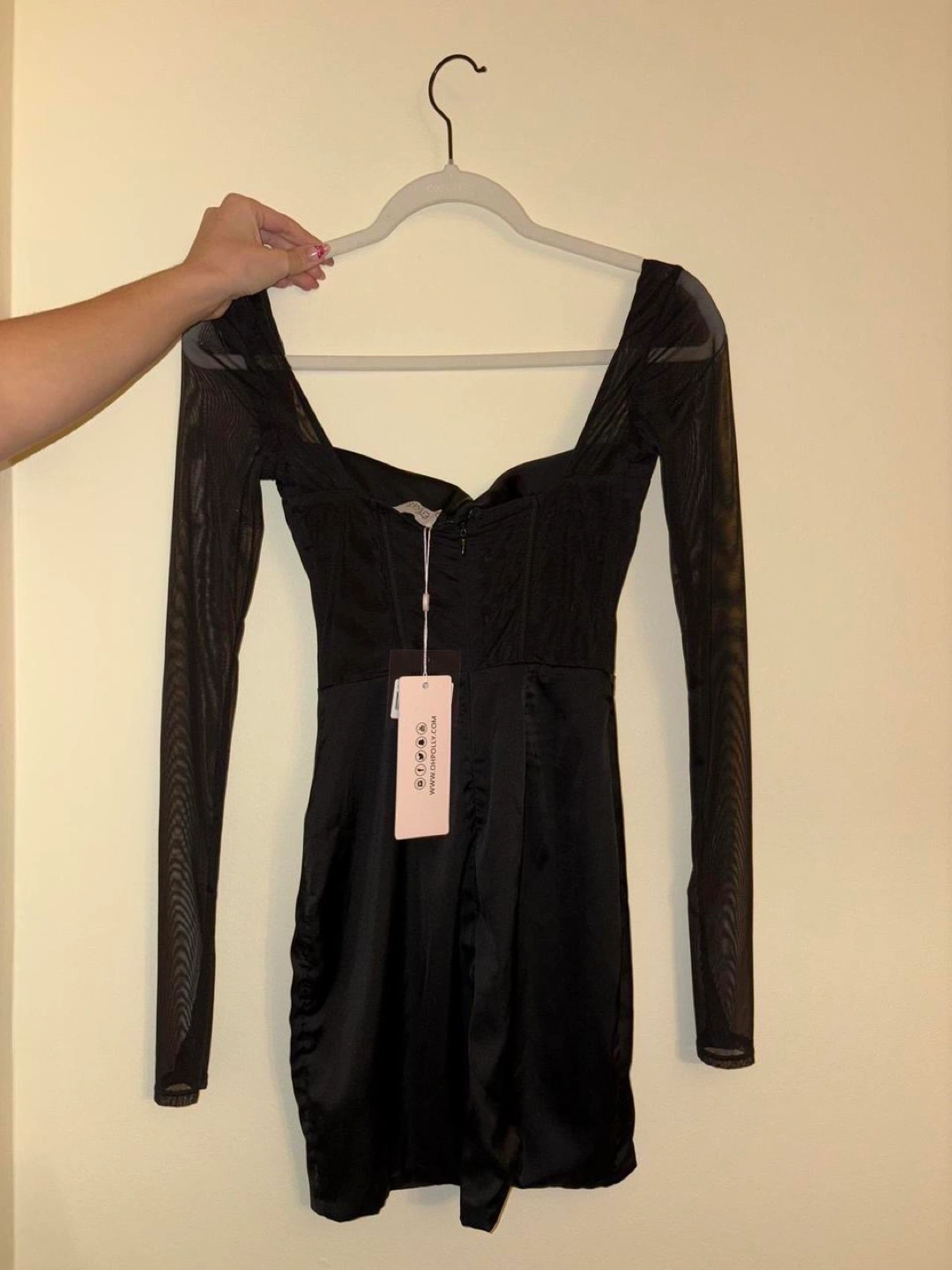 NWT Oh Polly Long Sleeve Mesh Mini Dress in Black