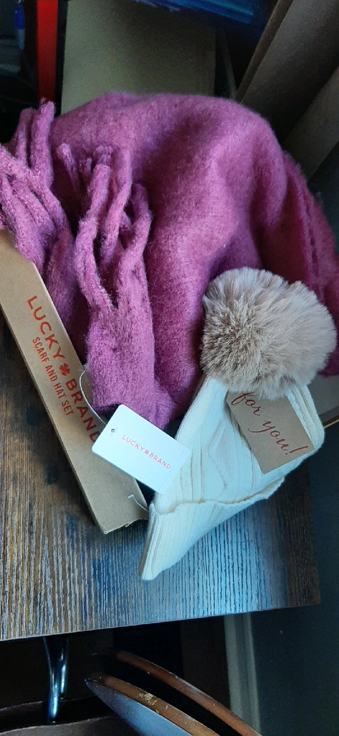 60New with Tags! The set includes a scarf and a cream-coloured hat with a fluffy pompom. The set comes in its original box. Cash only