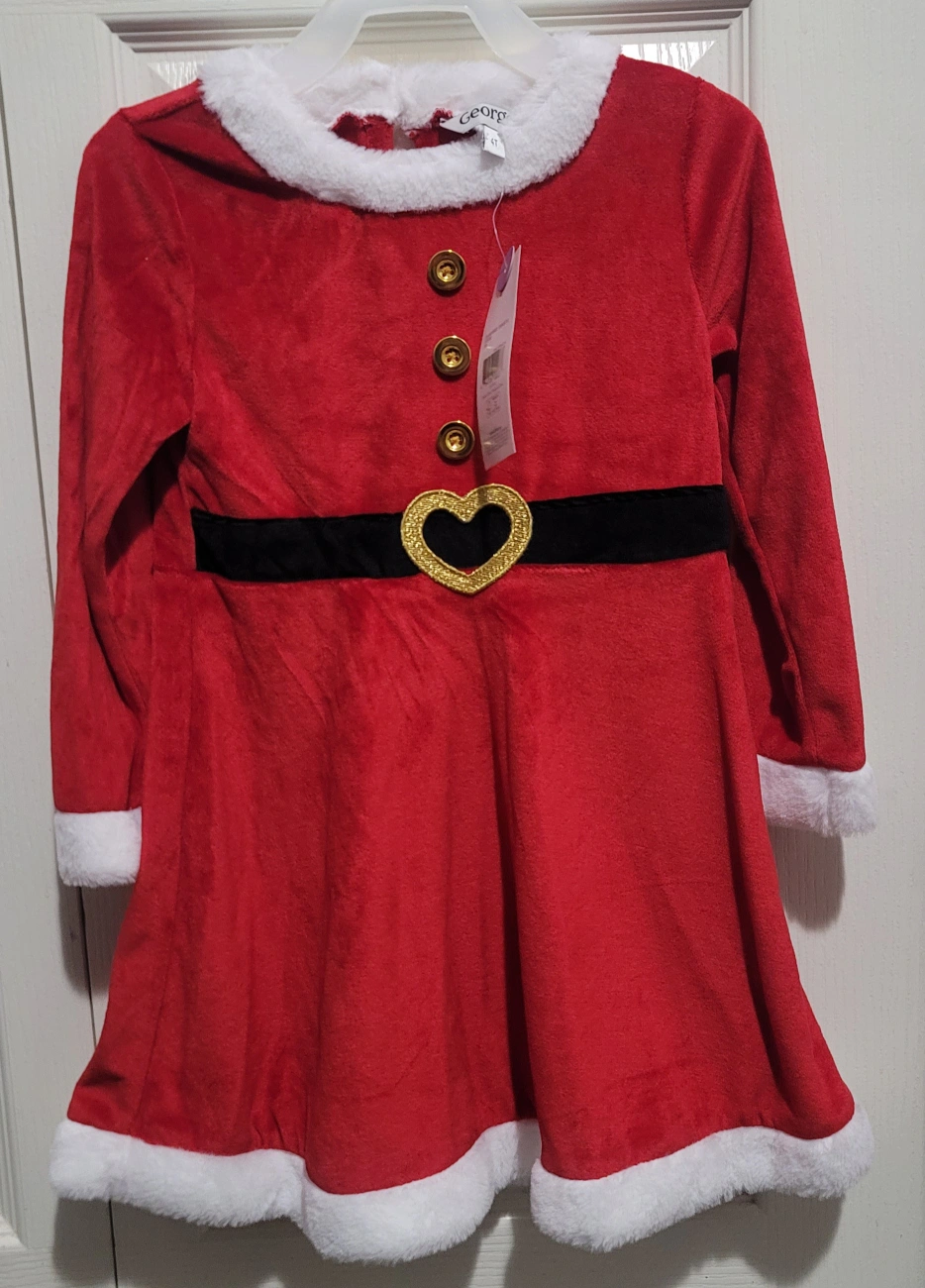 10brand new with tags, never worn size: 4T selling this adorable George brand Santa dress It Features a cute heart-shaped buckle and fluffy white trim. Perfect for the holidays!