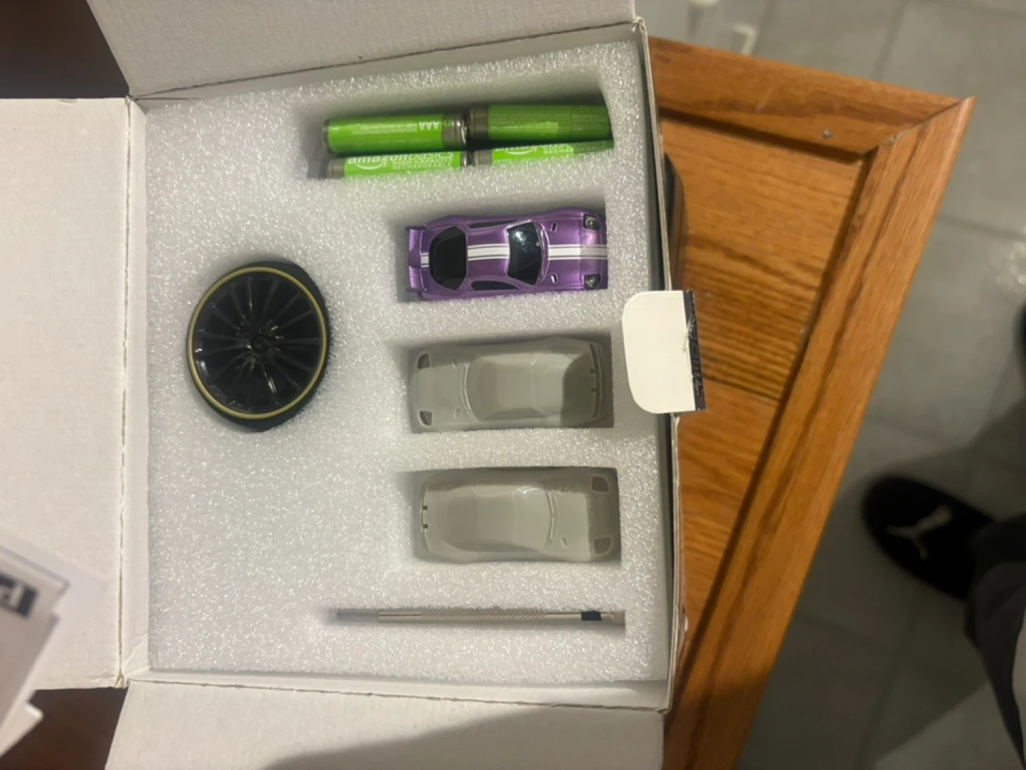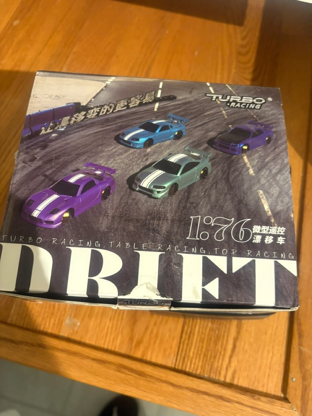 This Turbo Racing 1:76 scale RC drift car is a fun little toy for racing on tabletops. It comes with extra car shells and a small screwdriver. Battery powered for quick play!