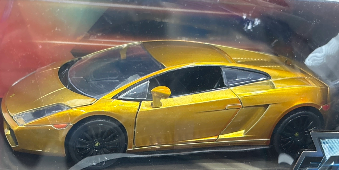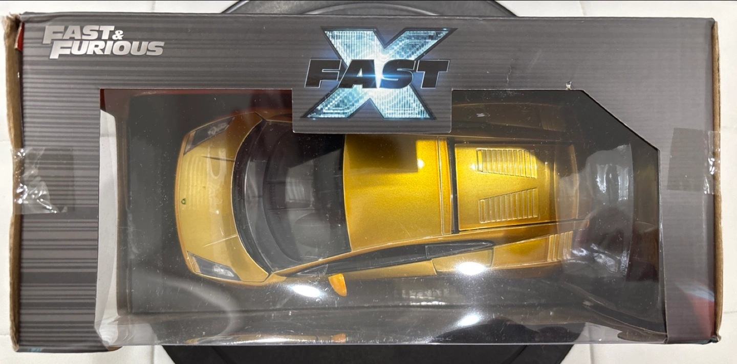 Gold Lamborghini Gallardo die-cast car. Part of the Fast X collection. 1:24 scale. New in box.