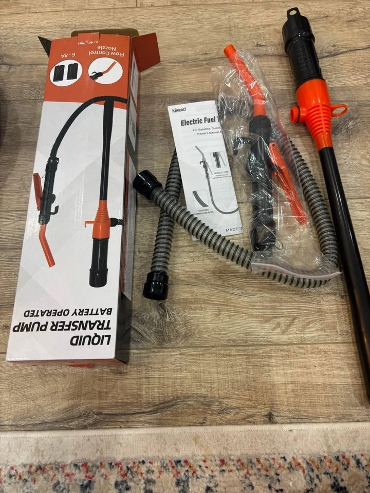 Brand new, never used portable electric fuel transfer pump. This battery-powered siphon pump is perfect for quickly and cleanly transferring gasoline, water, oil, or other non-corrosive liquids. It's universally fit for cars, lawnmowers, boats, and generators. Features cordless convenience with battery operation, a fast flow rate for efficiency, and an ergonomic design with a simple on/off switch and flexible hose. Pick up in Richmond Hill.