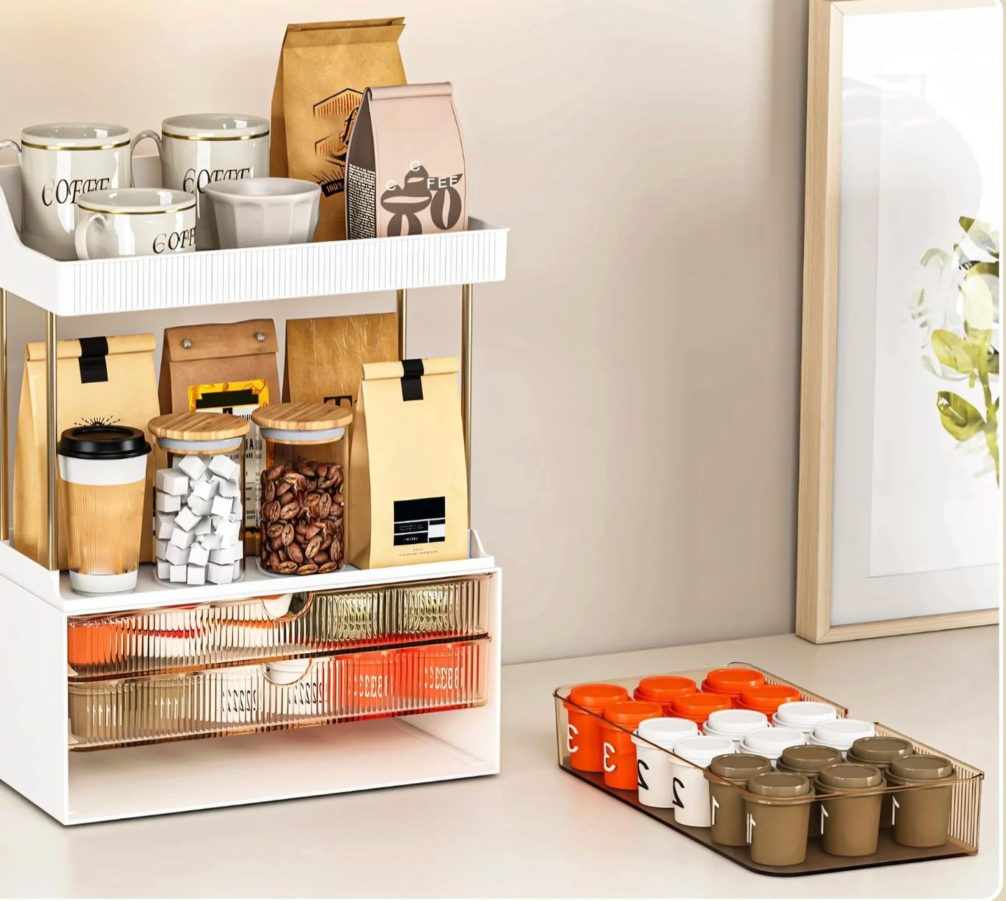 3 Drawers, 2 Tier Bathroom Vanity Organizer Office Kitchen