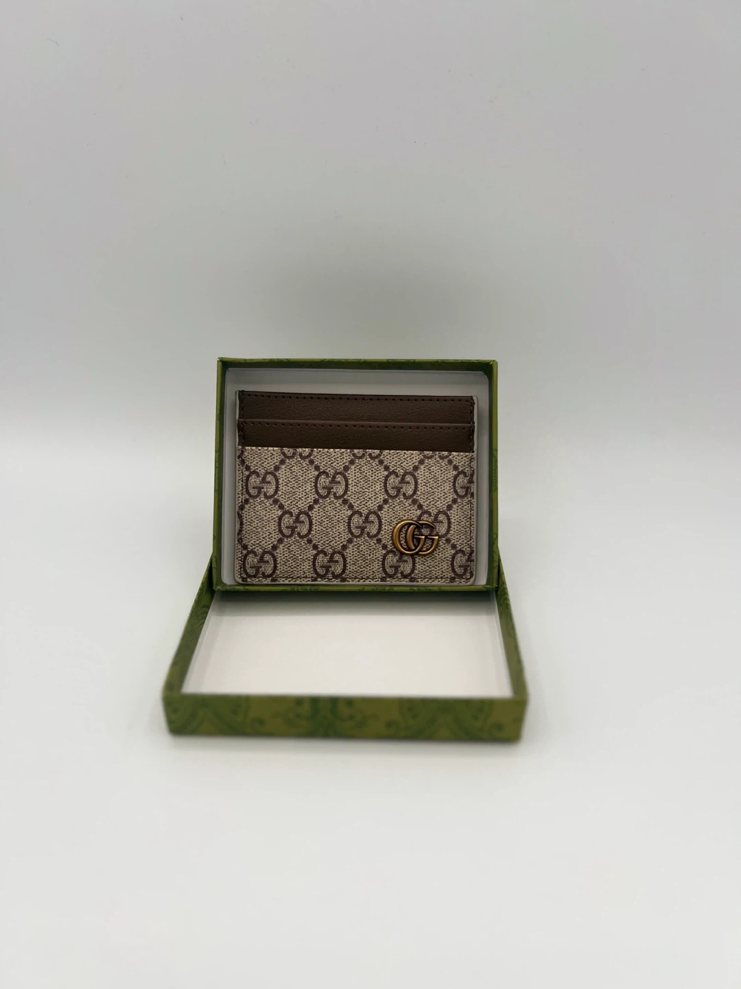 A classic Gucci card case in the signature GG Supreme canvas. It features multiple card slots and a compact design. Perfect for keeping your essential cards organized.