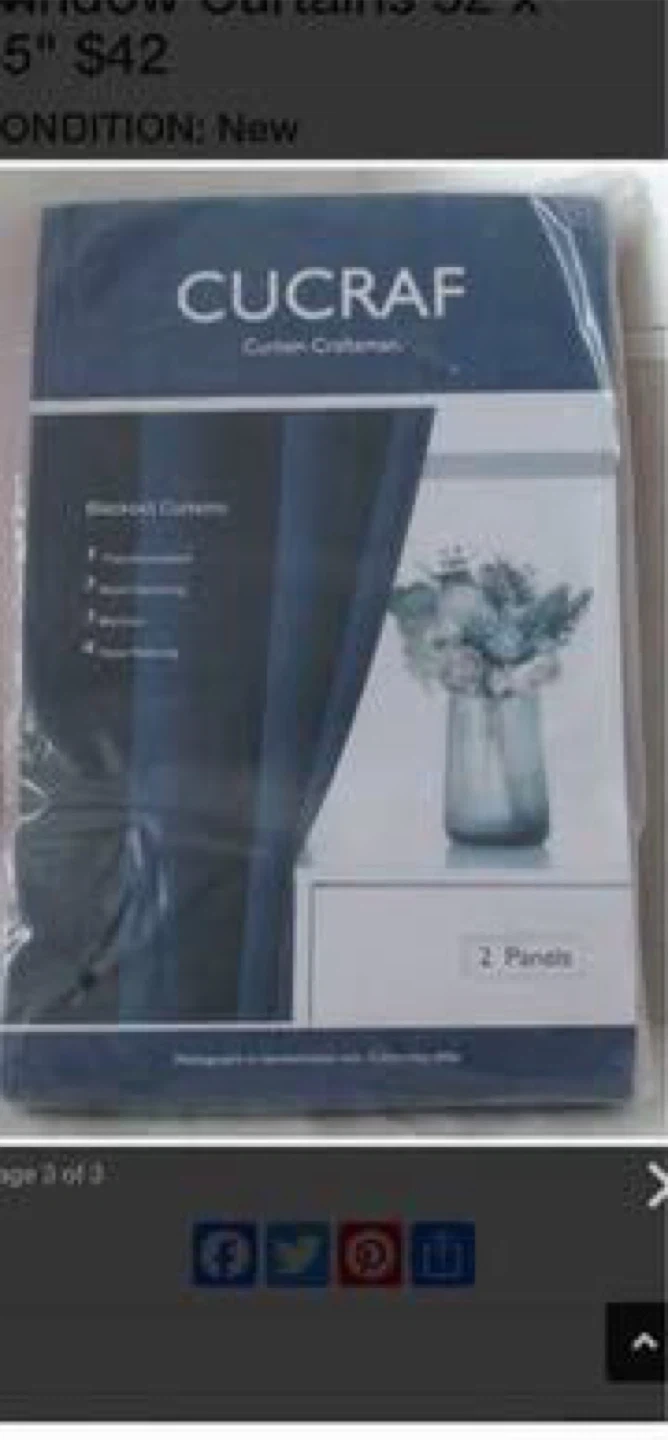 Beautiful NEW Cucraf Full Blackout 2 Panel Window Curtains 52 x 45"