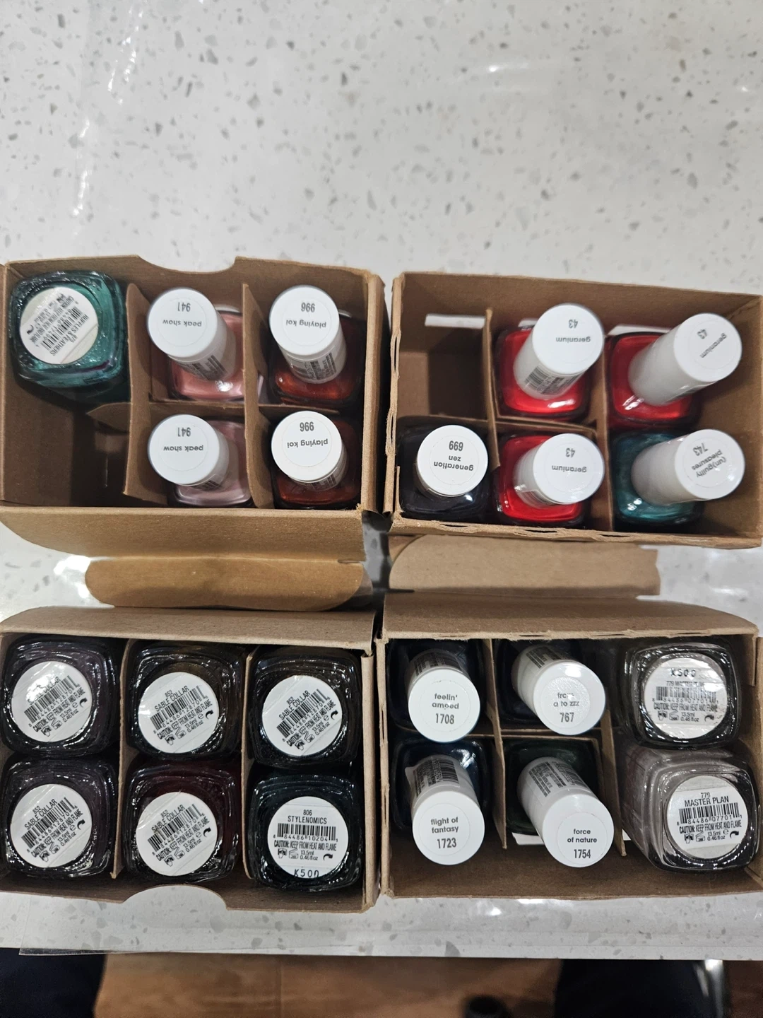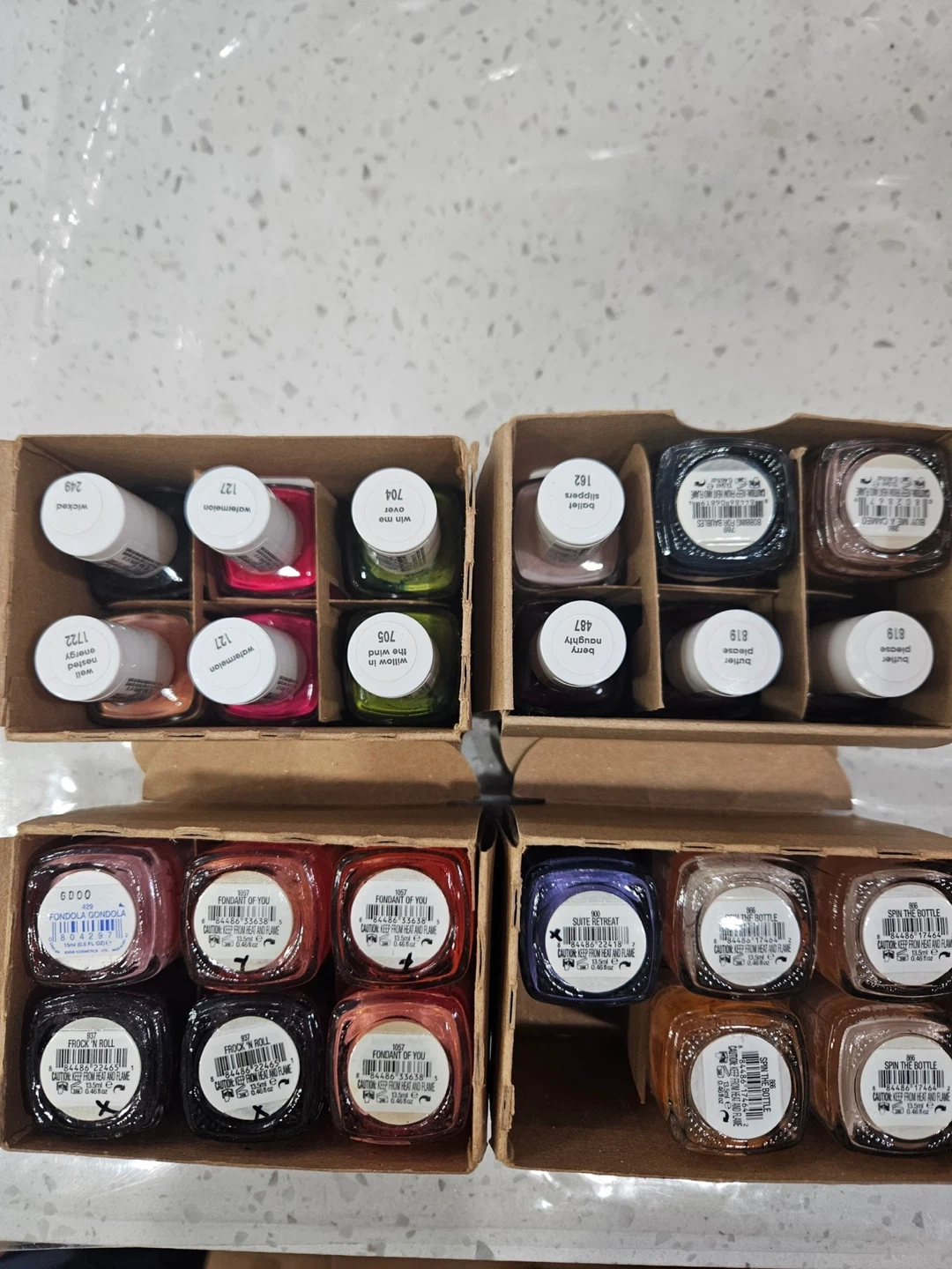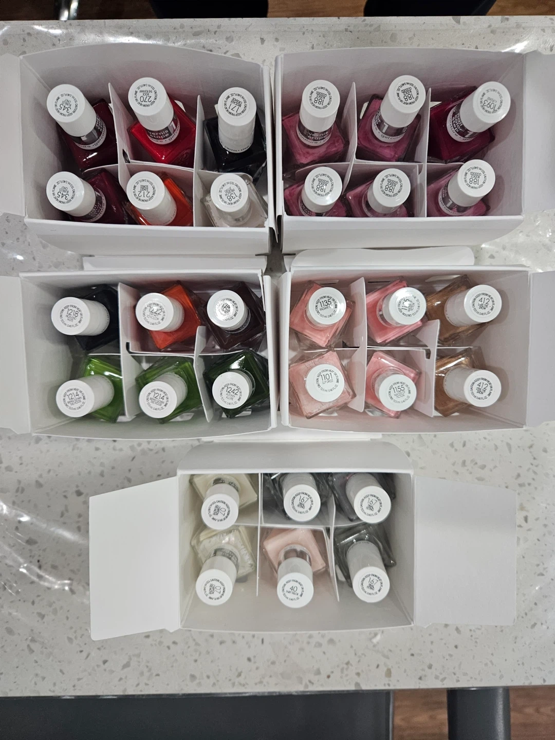 Selling a variety of nail polishes! They come in assorted colors and are in great new condition. Perfect for anyone who loves doing their nails at home or for professional use