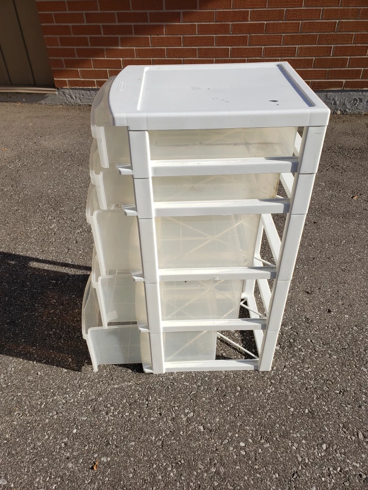 Selling a handy 5-drawer plastic storage tower. It's great for organizing clothes, toys, or anything else you need to keep tidy. It's in good condition and ready for a new home!