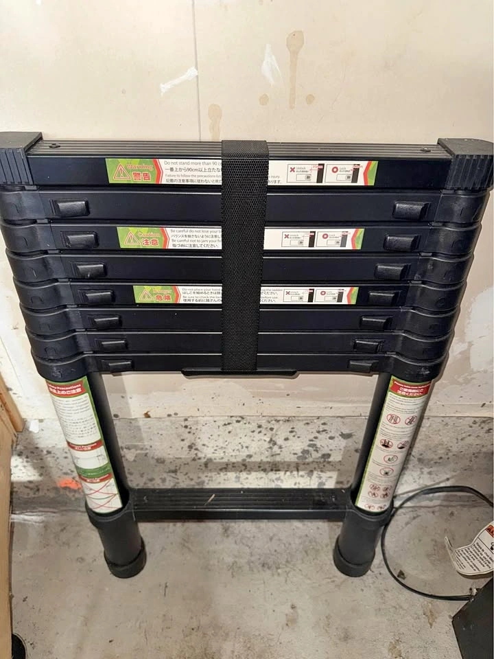 Selling an 8.5ft (2.6m) retractable telescopic ladder in excellent condition. This has only been used once and still looks brand new. It’s perfect for indoor or outdoor use, especially if you have limited storage space.