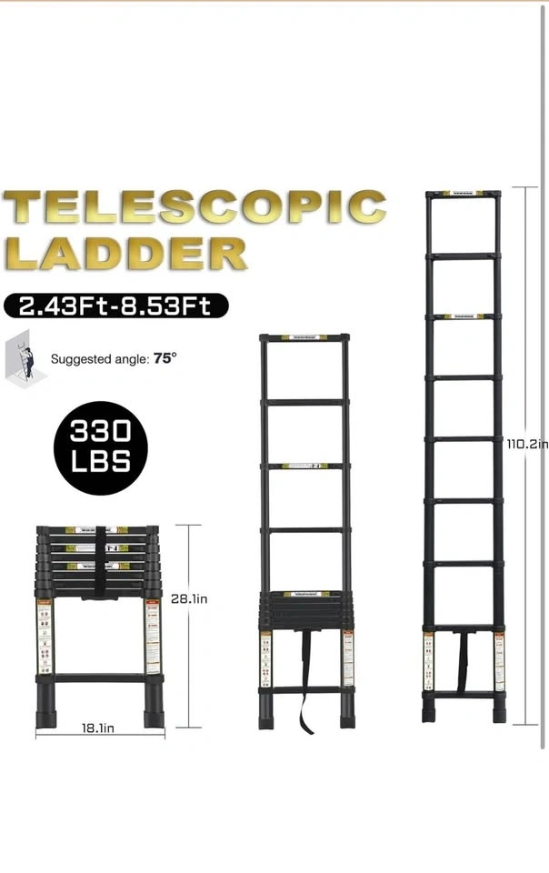 8.5ft Telescopic Ladder - Black Aluminum - Like New