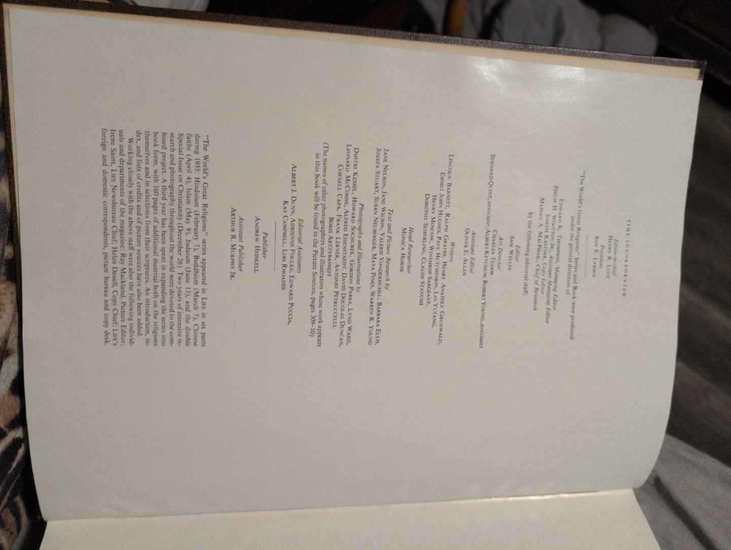 This hardcover book explores the world's major religions. It was published in 1957 by TIME Incorporated. It includes extensive research and photographs.