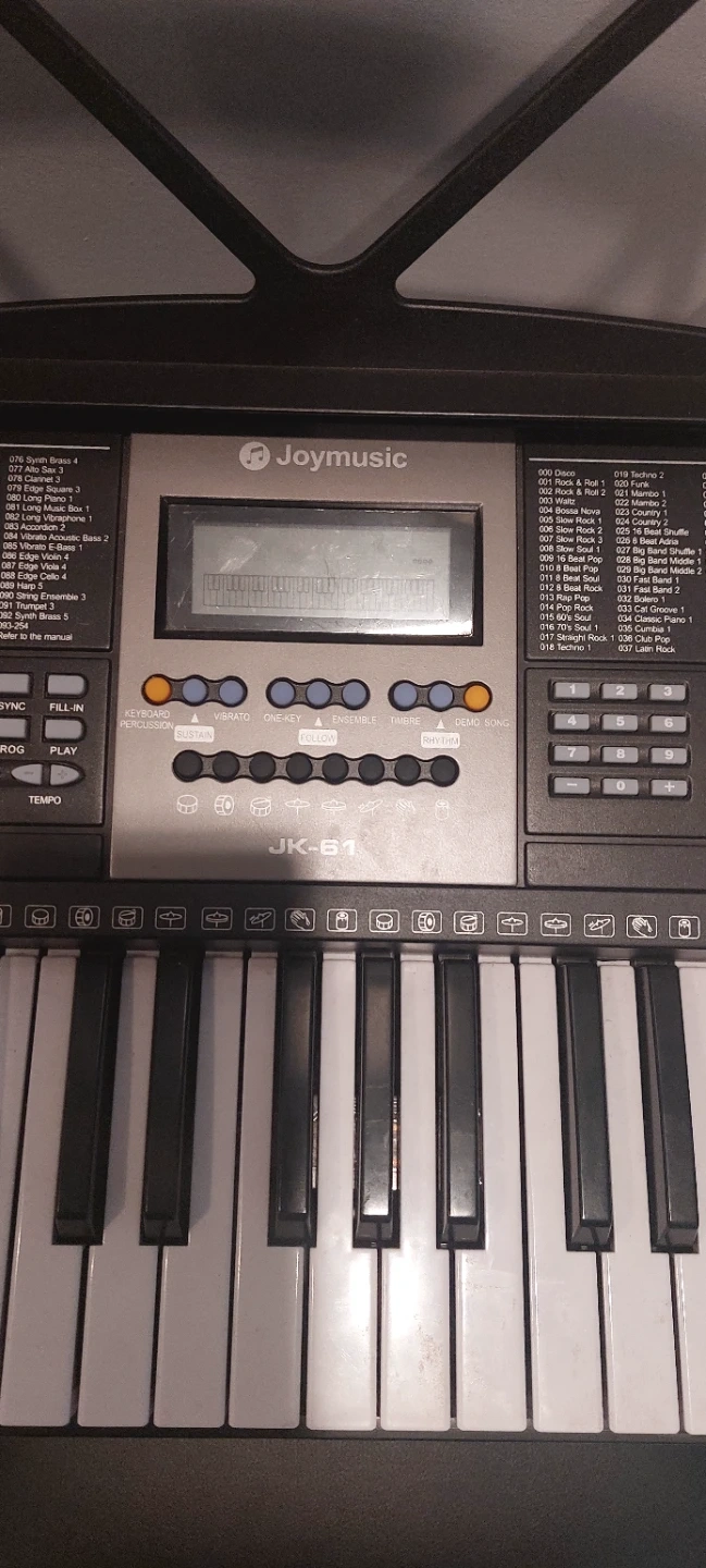This is a Joymusic JK-61 61-key multifunctional training keyboard. It's a training keyboard with various sounds and rhythms. This would be useful for someone learning to play the keyboard.