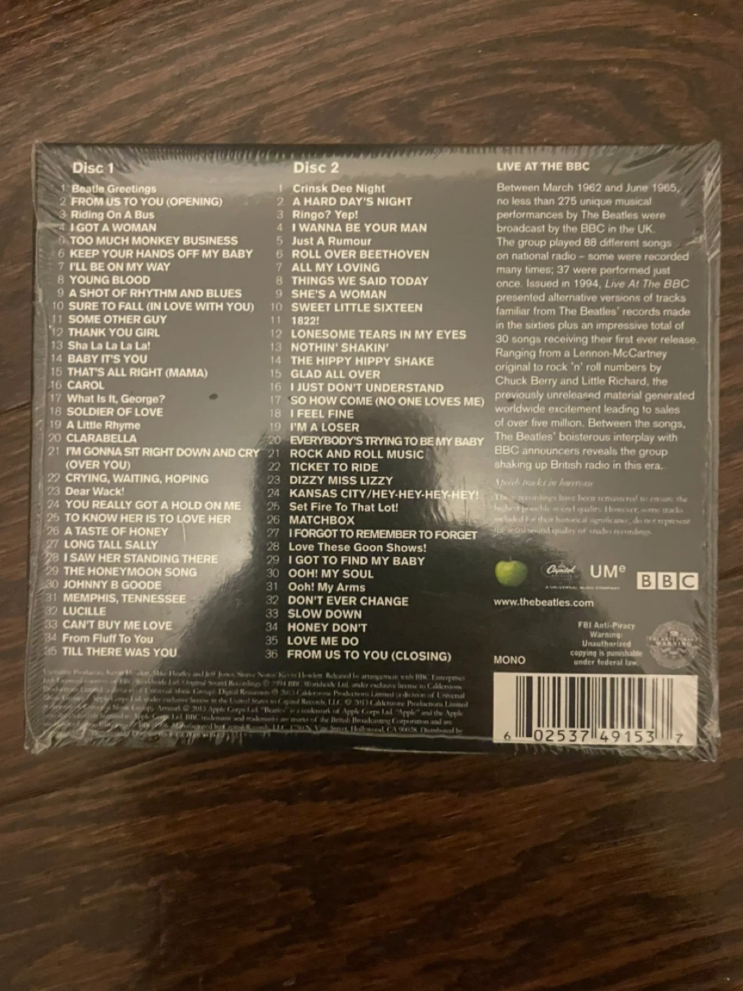 Selling The Beatles 'Live at the BBC' CD. It has been remastered and repackaged. Enjoy live performances recorded on national radio between March 1962 and June 1965!