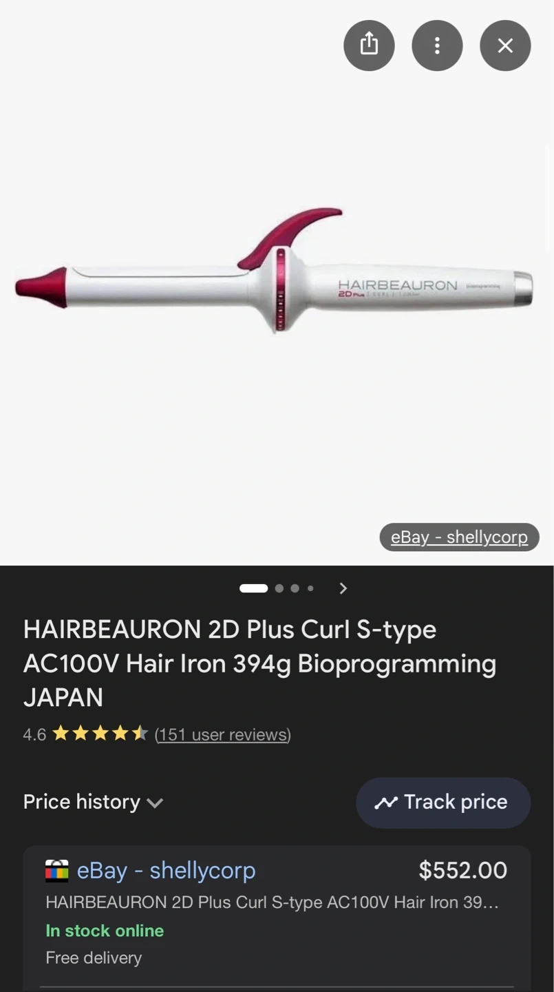 HAIRBEAURON 2D Plus Curl S-type hair iron. Bioprogramming technology. AC100V. Weighs 394g.