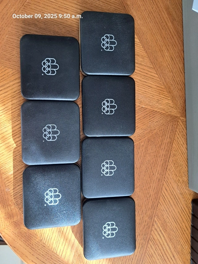 Montreal Olympics silver coins, 7 sets with 4 coins each. Over 30 ounces of pure silver content. Price is firm $4900. Used - Good. For Sale By: Owner.
