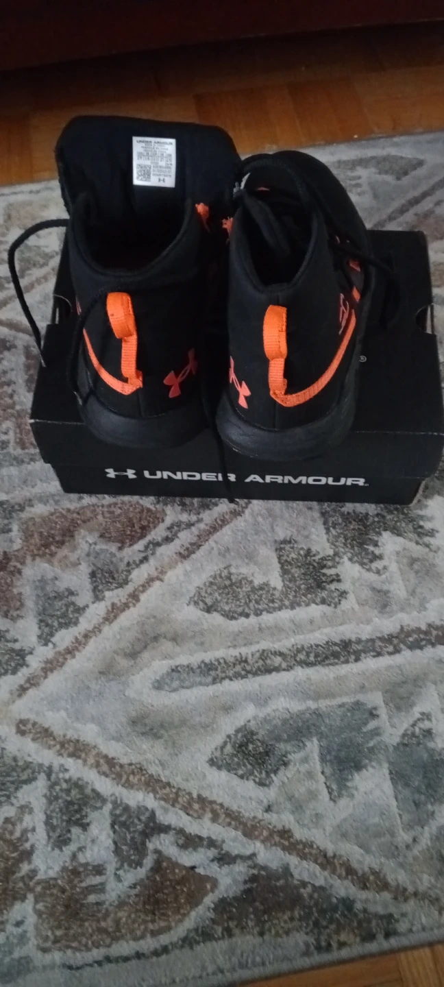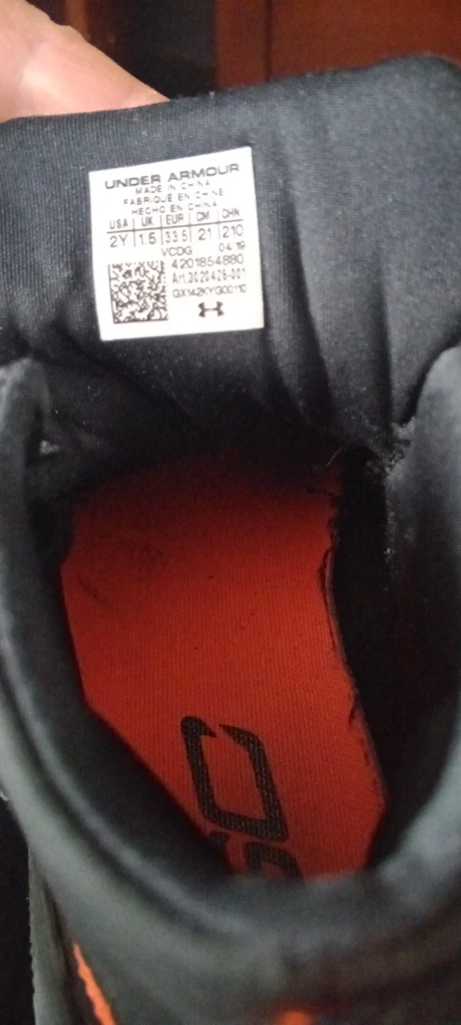 Under Armour Curry basketball shoes in black and orange. US Youth size 2Y. Includes original box.