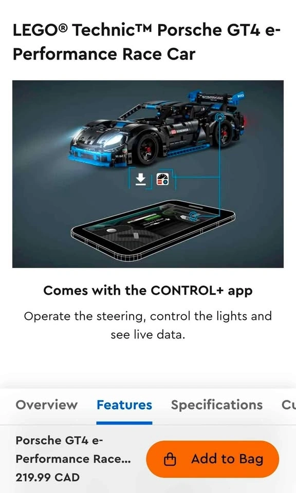 This LEGO set is being sold fully completed (built) - all original parts included with original box & manuals. Clean home/smoke free. Located in Byward Market. Please pick up with bin; will not disassemble. Porsche GT4 E-Performance Race Car (42176 Technic product: retailed $219).