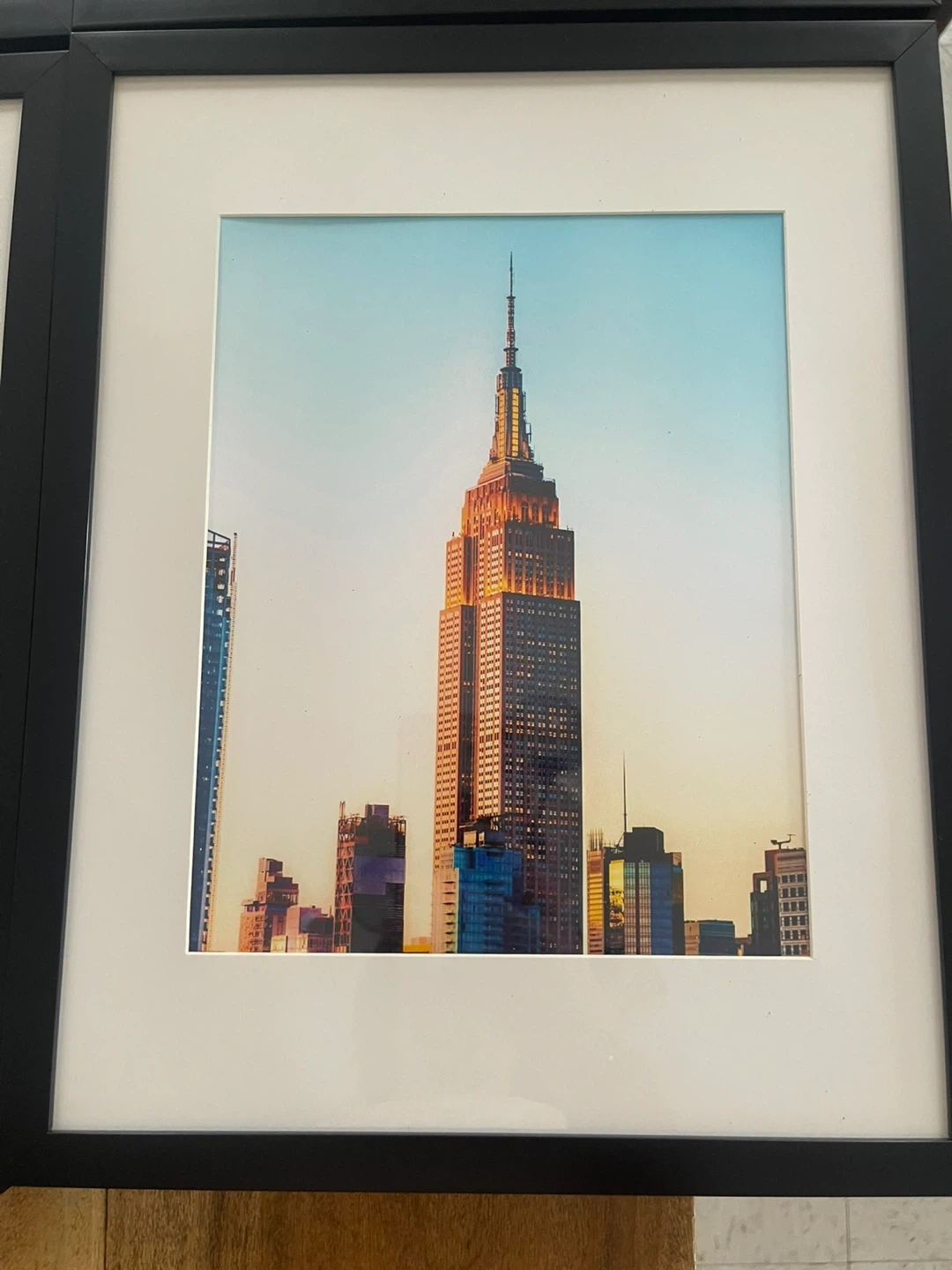 Selling a set of 9 framed prints of New York City landmarks. They are in great condition and ready to hang in your home or office. Includes iconic scenes of the Empire State Building, Times Square, the Brooklyn Bridge, and more!
