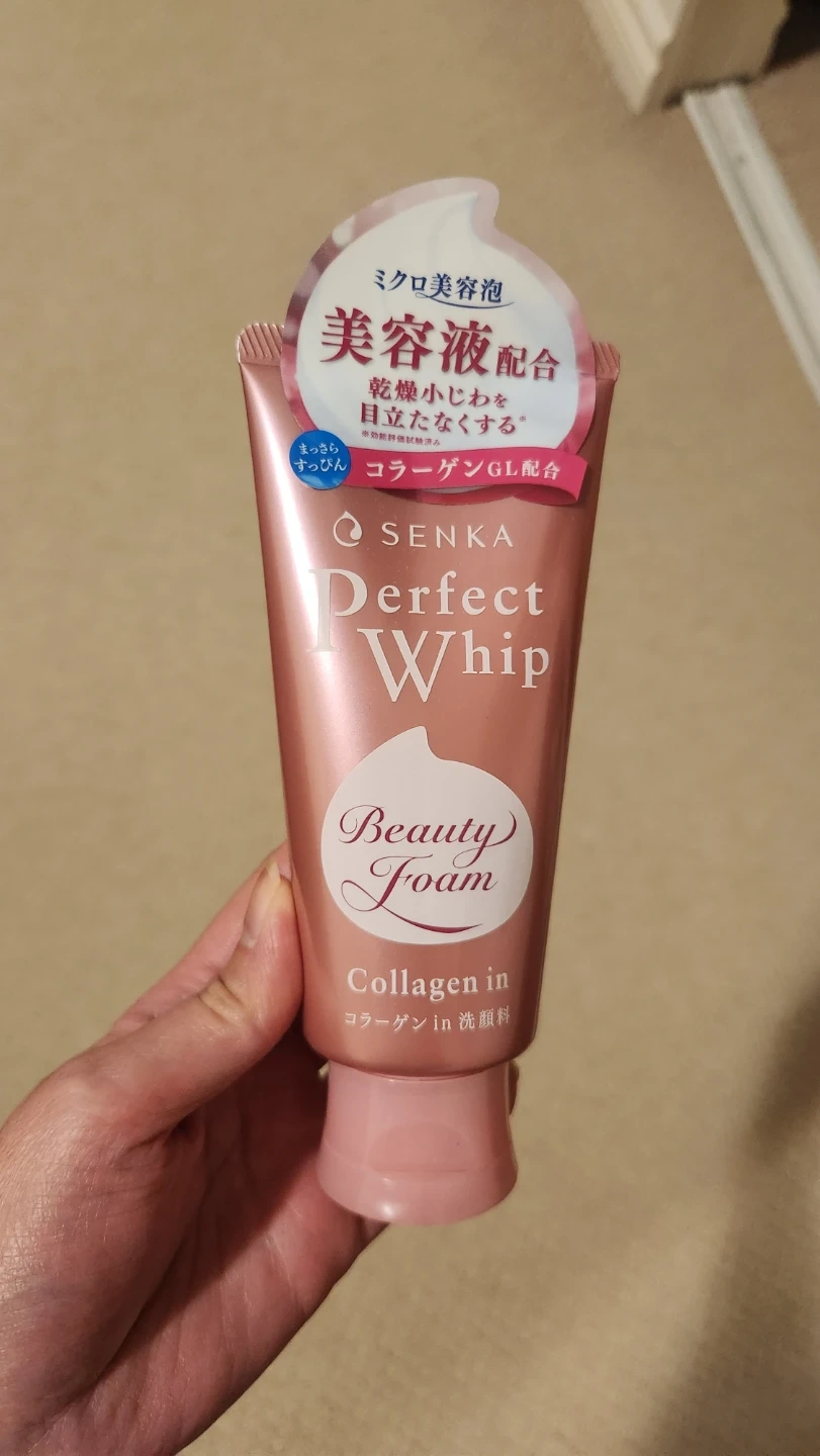 This Brand New Senka Perfect Whip beauty foam cleanser contains collagen and hyaluronic acid. It's formulated for deep cleansing while moisturizing. A 120g tube of facial cleanser.