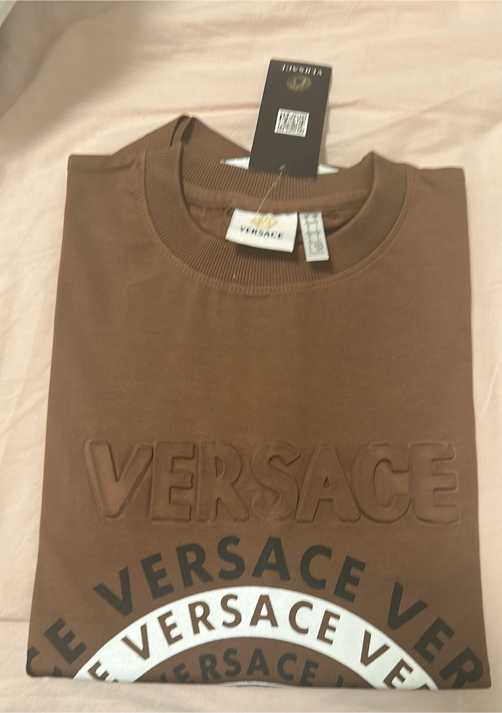 Versace Brown Embossed Logo T-Shirt