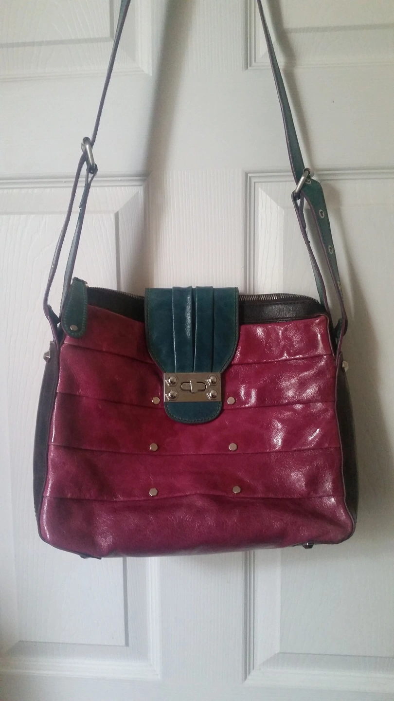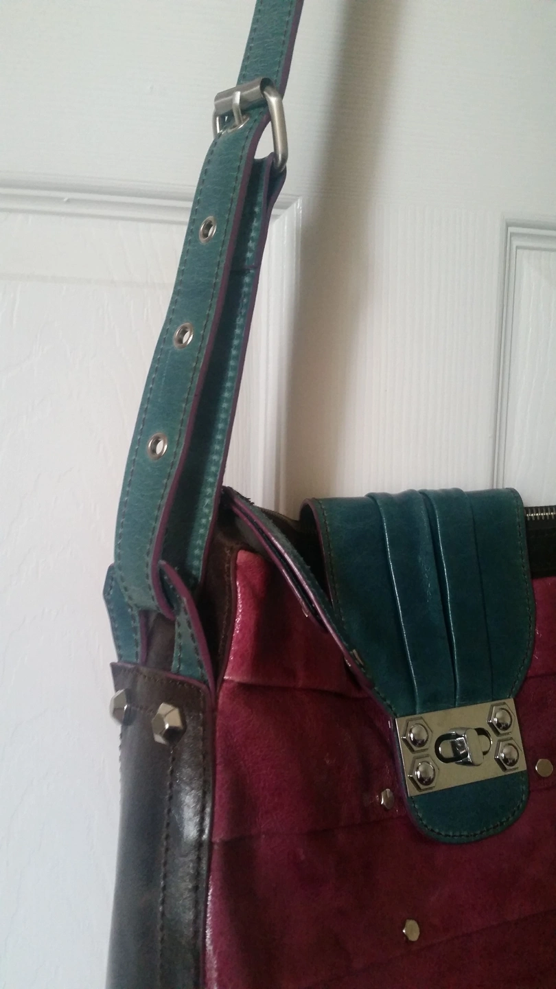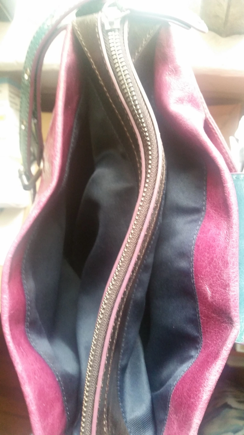 In great condition. Has several compartments and a small hidden cell phone pocket. Straps are adjustable. Can fit an 8 or 10 inch tablet. Color: Multicolor. Material: Leather. Style: Hobo bag.