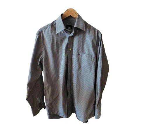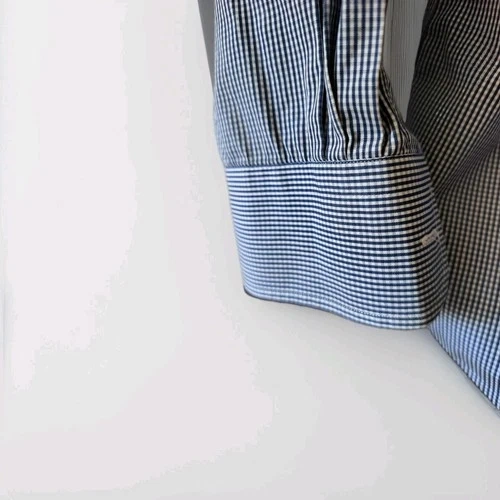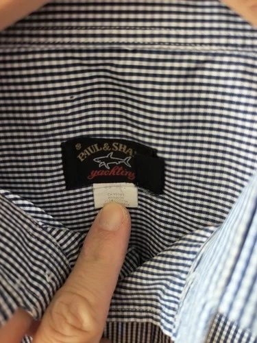 Up for sale is a classic Men’s Paul & Shark Yachting button-down shirt. This piece features a crisp blue and white gingham check pattern and the signature embroidered shark logo on the chest pocket. Made from high-quality 100% cotton, this shirt is perfect for a smart-casual or nautical-inspired look.