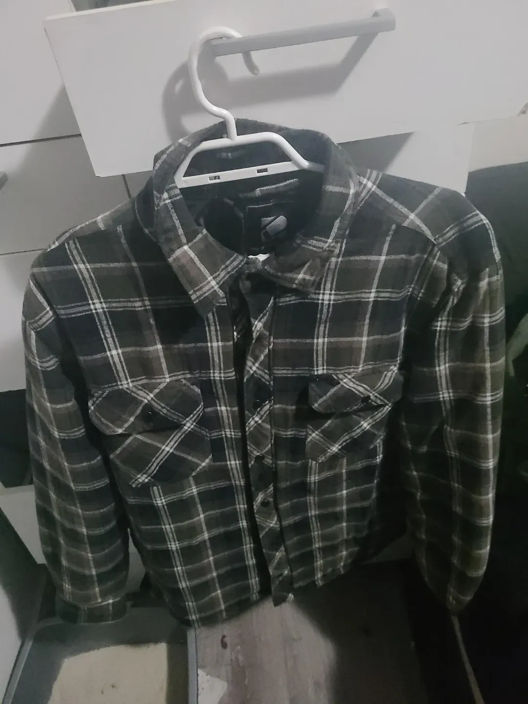 Men's long-sleeved flannel shirt with a classic plaid pattern. It's a comfortable and casual piece. This shirt is great for layering during cooler weather.