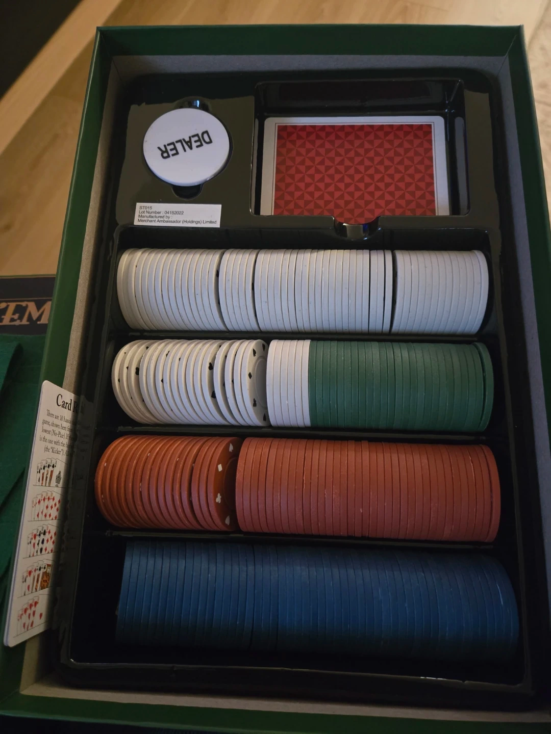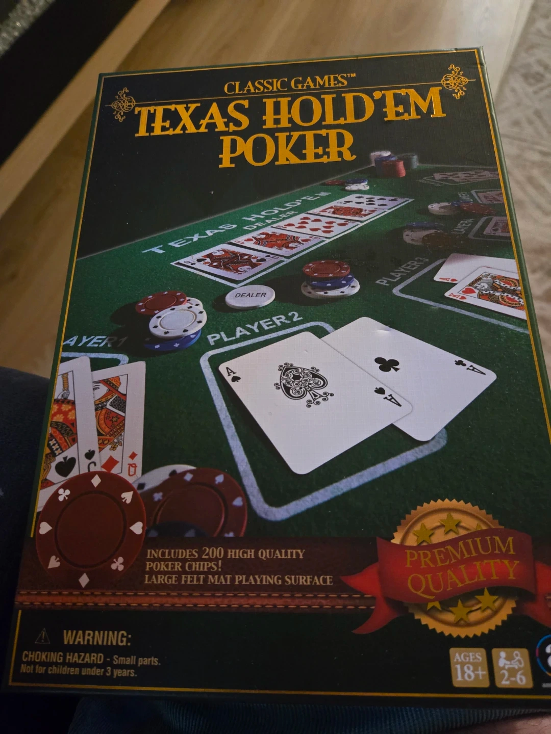 Includes 200 high-quality poker chips and a large felt mat playing surface. This set comes with everything you need for a fun game night. Suitable for 2-6 players, ages 18+.