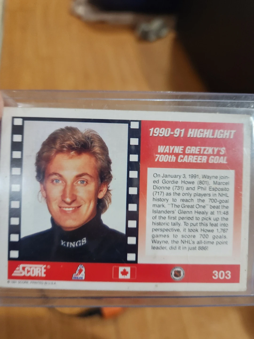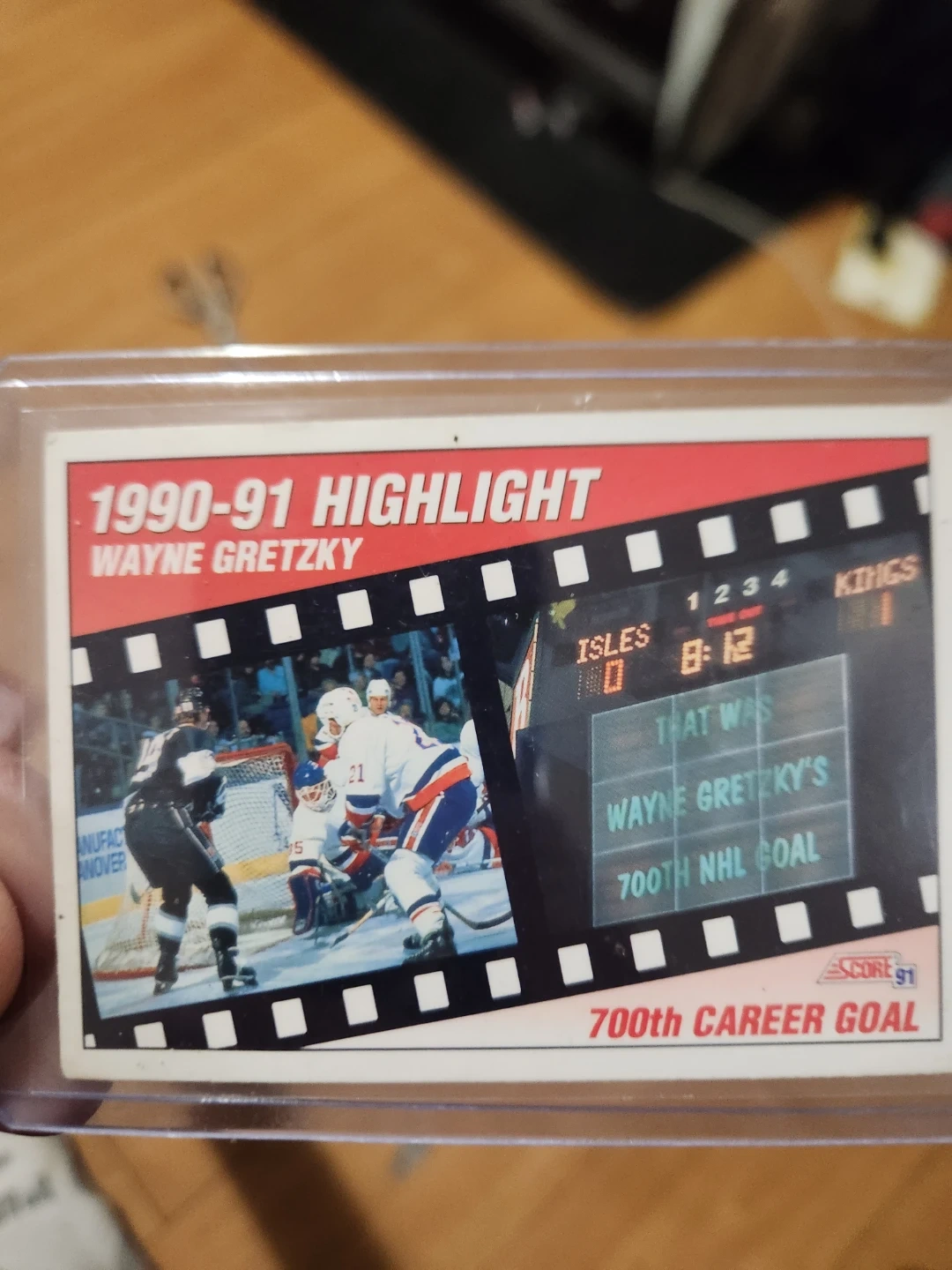 Selling a Wayne Gretzky 1990-91 Highlight Score hockey card. It commemorates Wayne Gretzky's 700th career goal. A great addition to any hockey card collection!