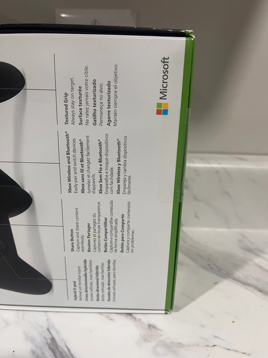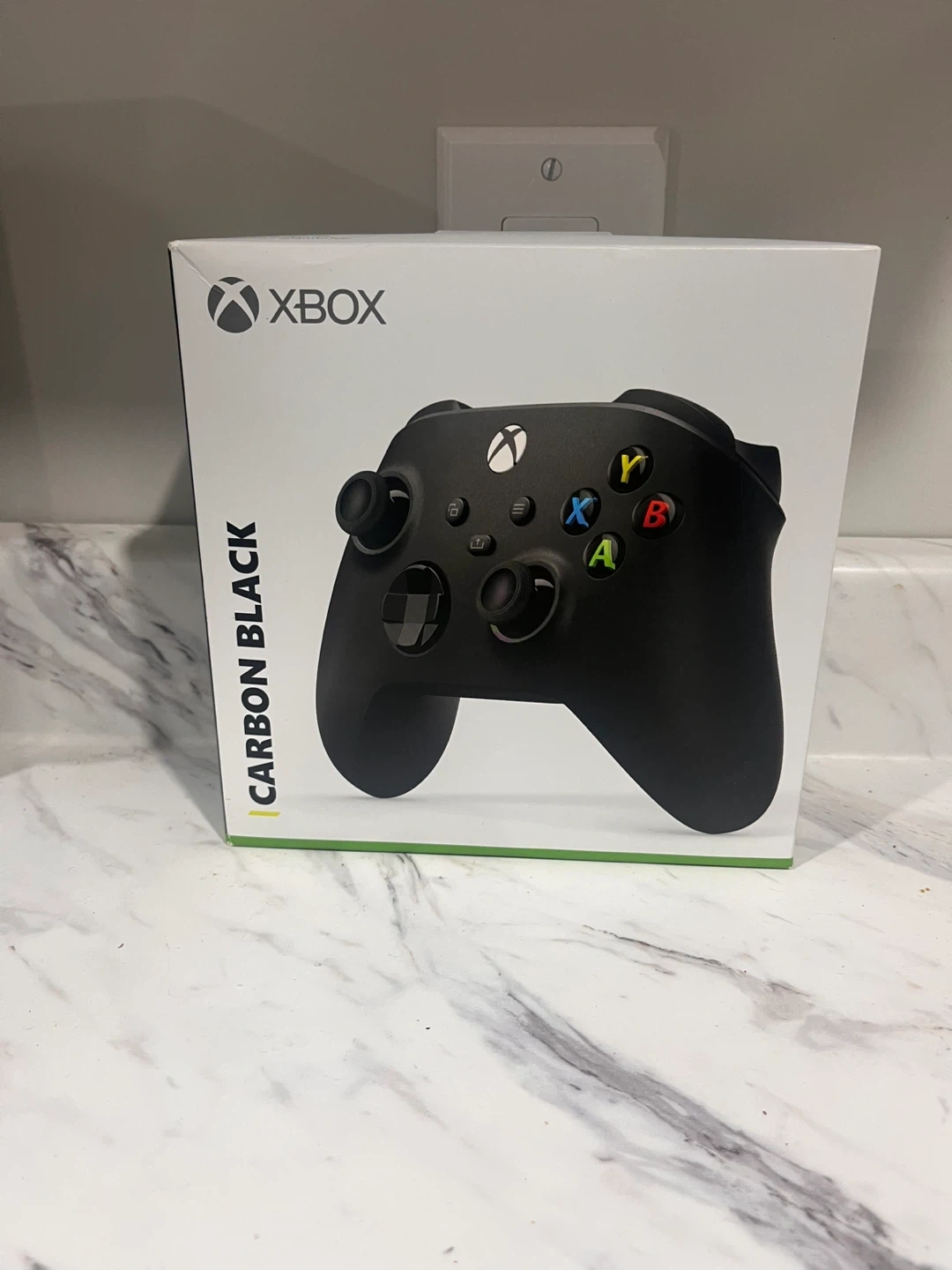 This is an official Xbox Wireless Controller in Carbon Black. It features a hybrid D-pad and textured grip for enhanced control. The controller is compatible with Xbox Wireless and Bluetooth devices. It offers easy pairing and seamless switching between devices.