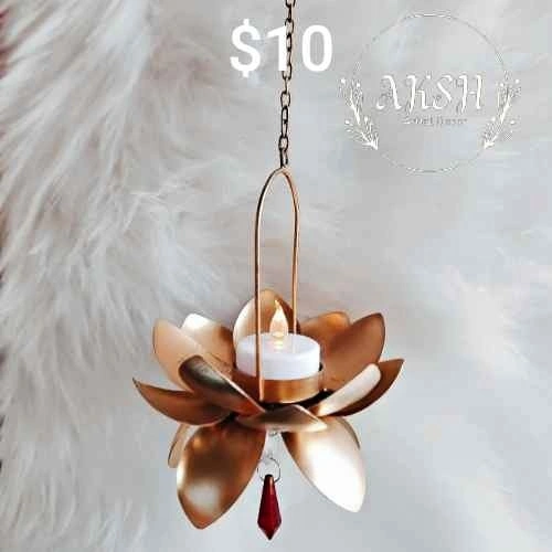 Golden Lotus metal Tea-Light Holder with chain hanging