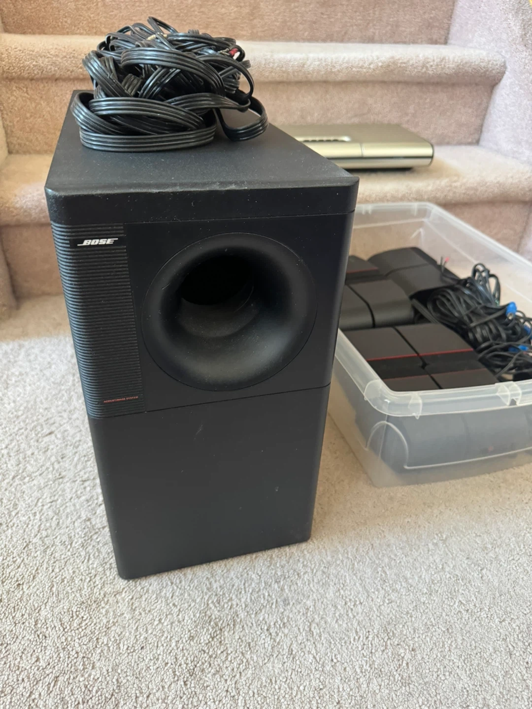 This Bose Acoustimass 5 Series III speaker system comes with the control unit and all satellite speakers. It's a black system that includes all necessary wiring. This system is great for upgrading your home audio experience!