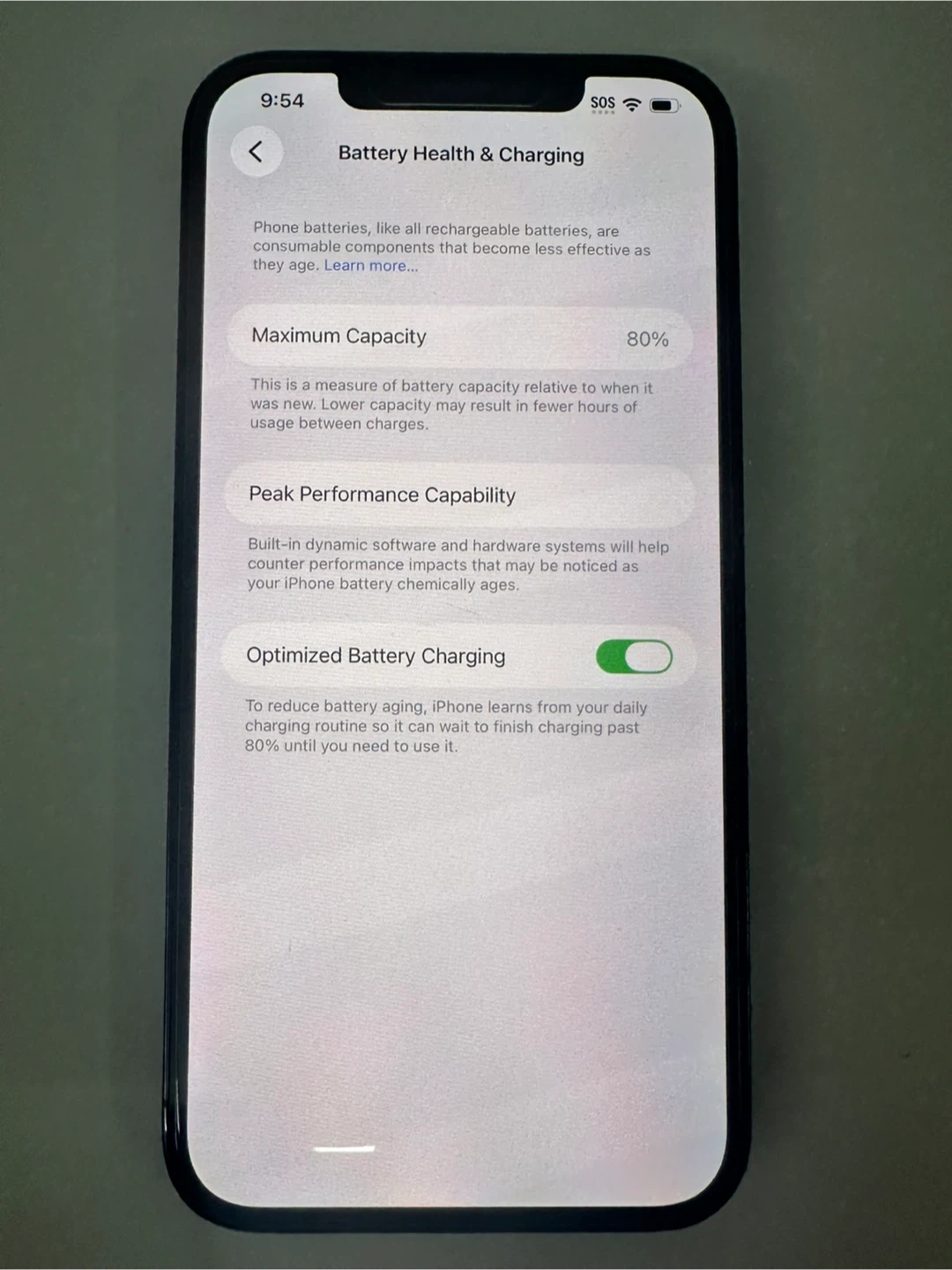 Battery Health = 80%.