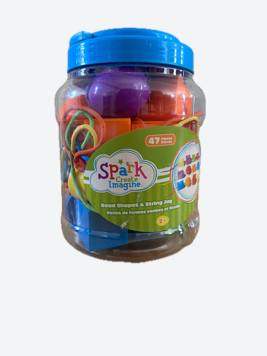This Spark Create Imagine jug includes 47 pieces of beads and string for crafting. It's recommended for ages 2 and up. Kids can create necklaces or other designs! With leap frog music making stuffy “ my pal violet “ take one for 5 or both for 8