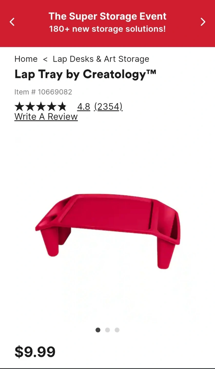 Selling a black lap tray by Creatology. It's in very good condition and perfect for working or relaxing in bed or on the couch! It's lightweight and portable.