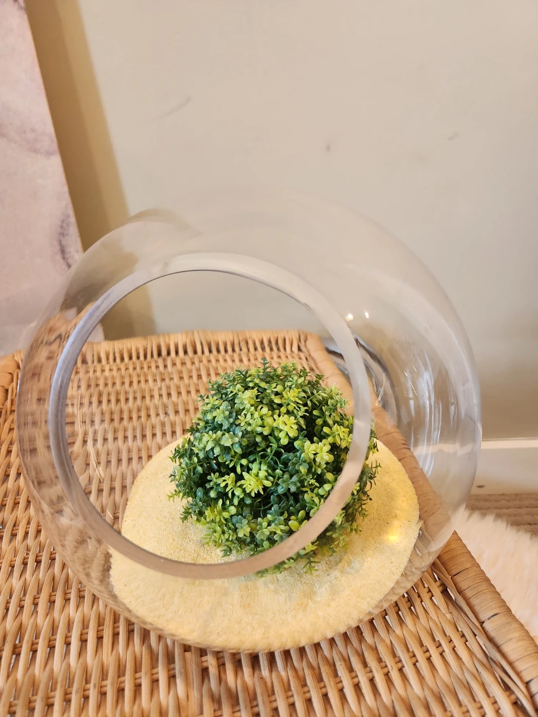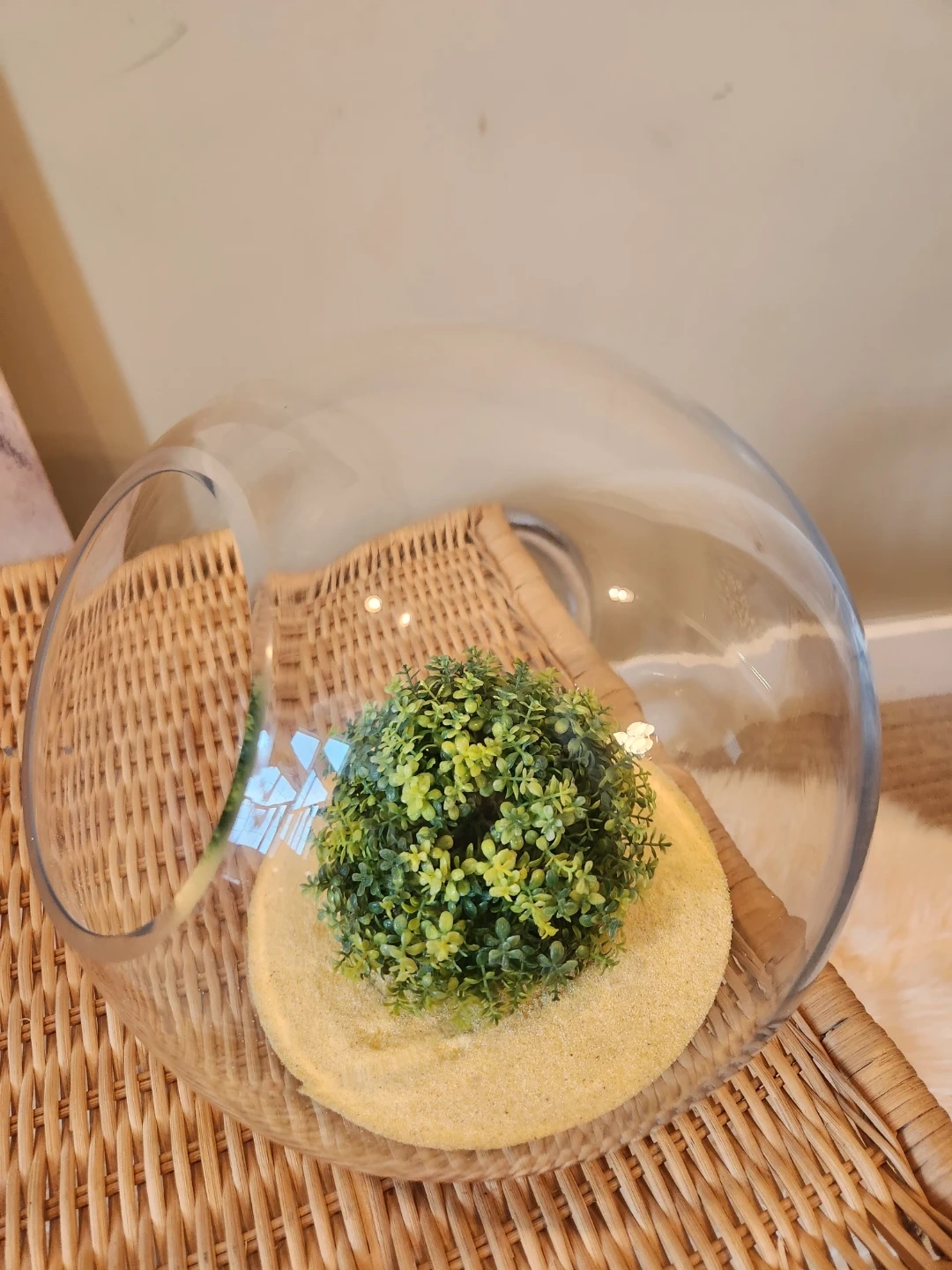 This NEW clear glass plant terrarium is a neat decorative piece for any space! This 11 inch diameter, flat bottomed glass terrarium is zen garden ready! Decorate with sand, glass beads, rocks and plants.....OR is it the perfect fish bowl!