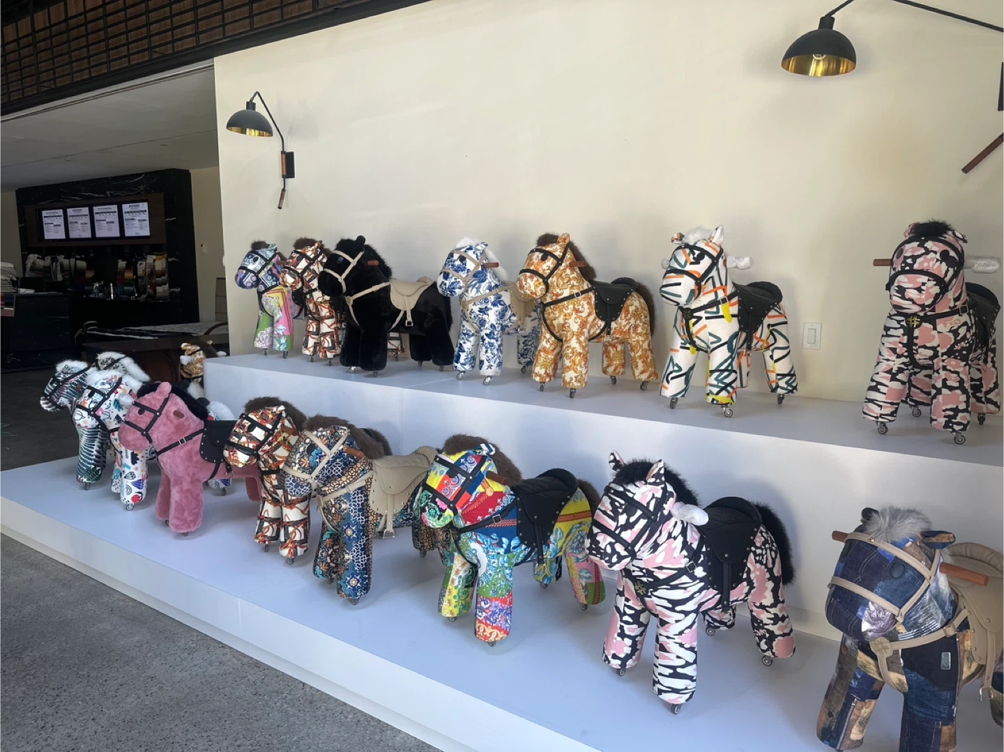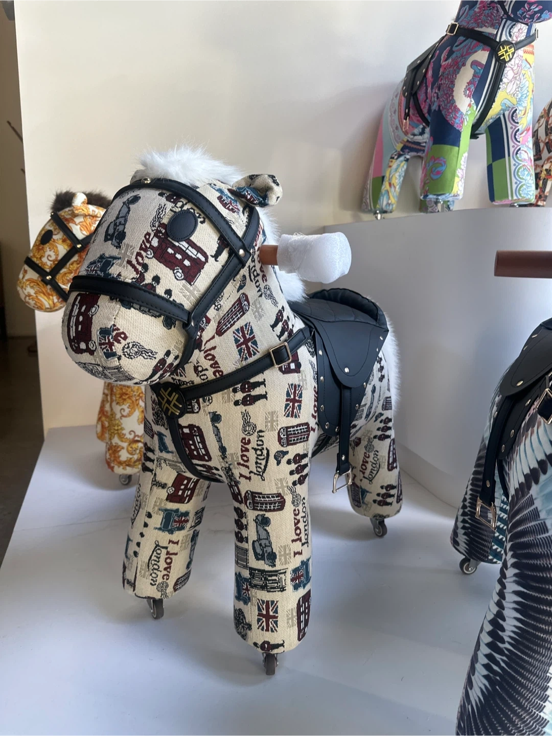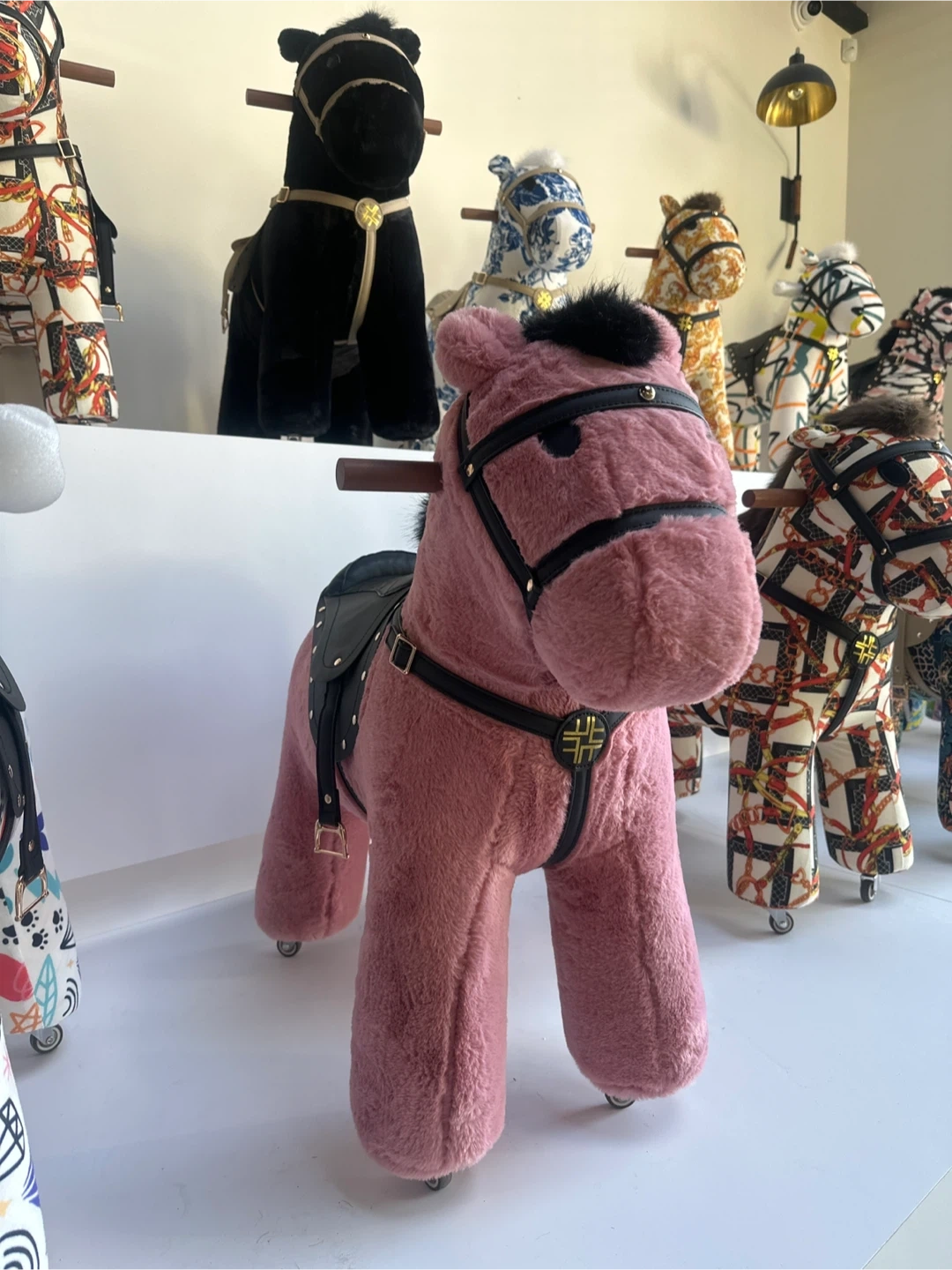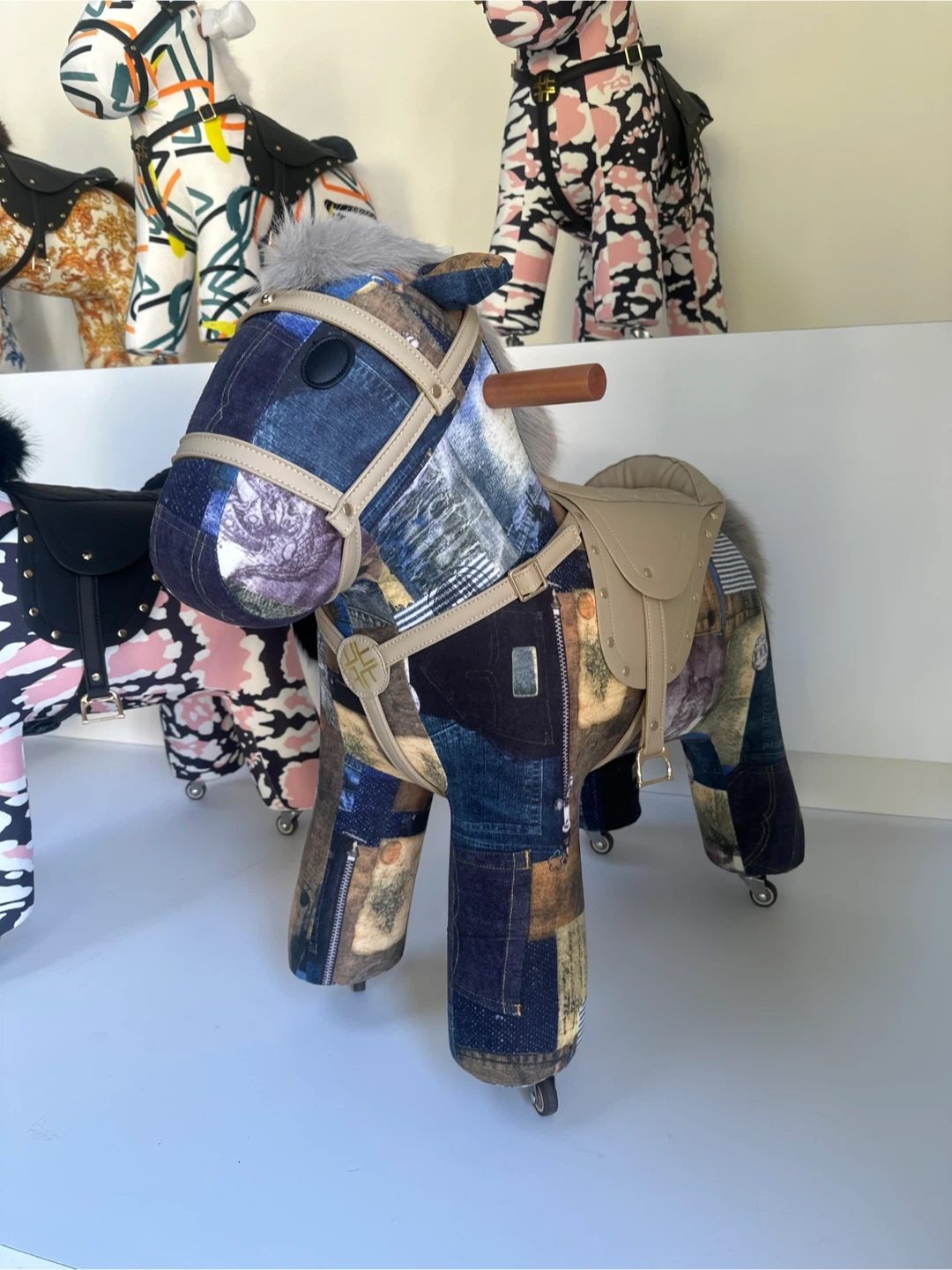 These adorable toy horses are perfect for little ones. Each horse features a unique and vibrant fabric design, complete with a saddle and wheels for easy movement. They're sure to spark imaginative play!