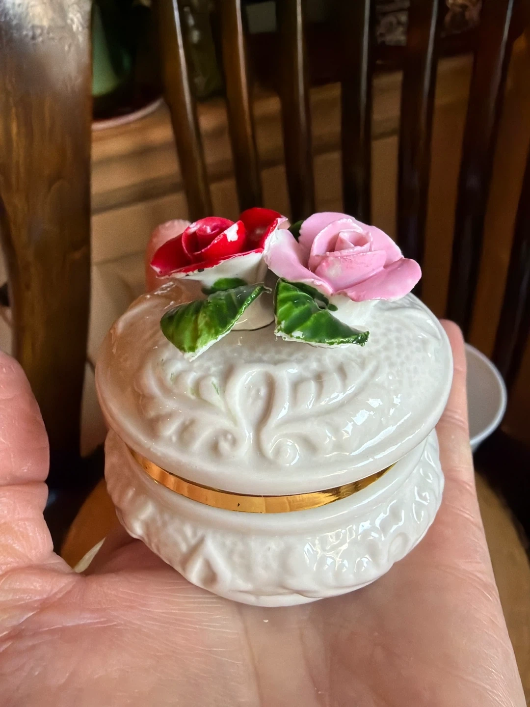 CHOICE 5~ PORCELAIN HINGED TRINKET DISH WITH ROSES. 2.5” for $6