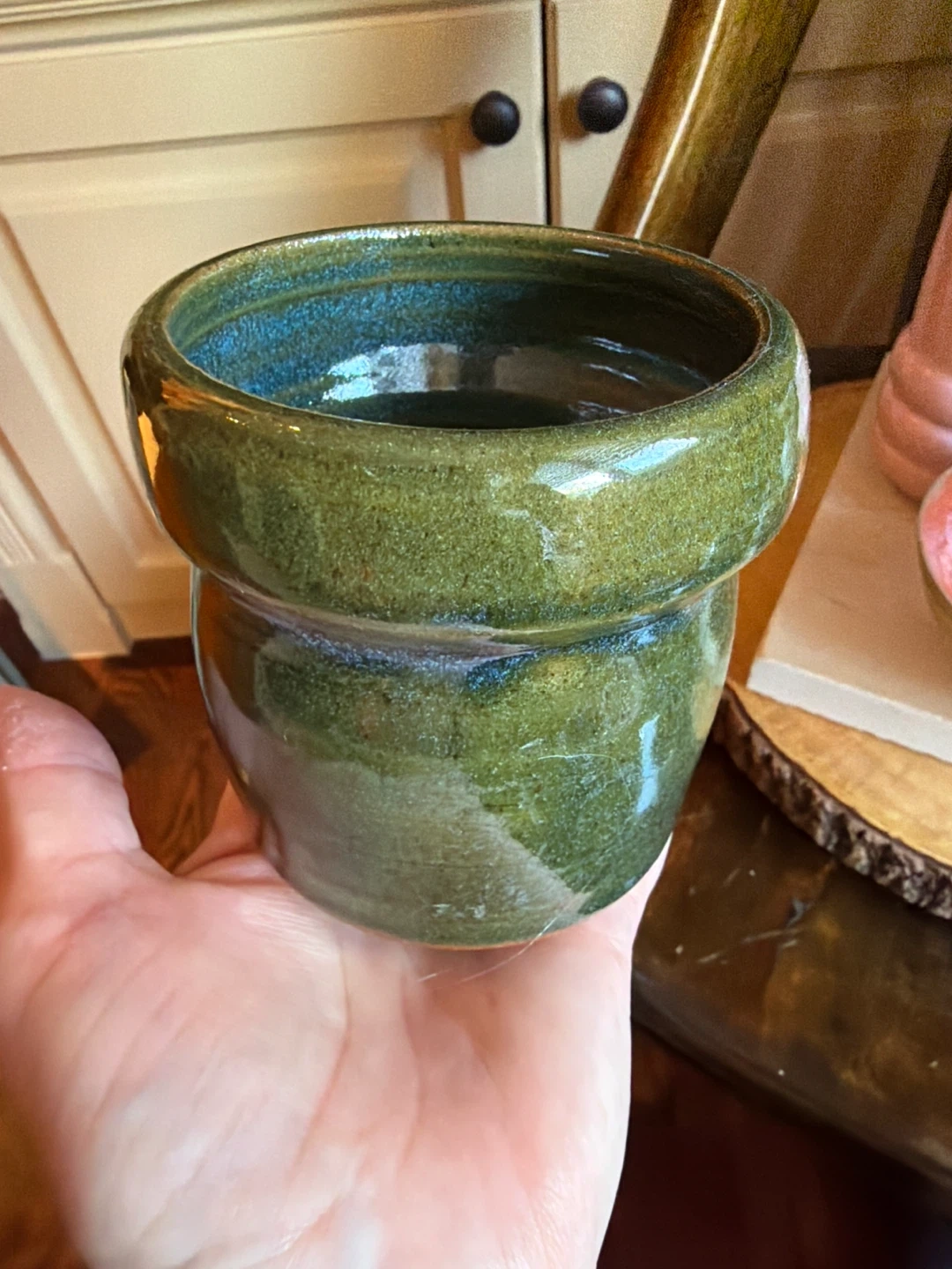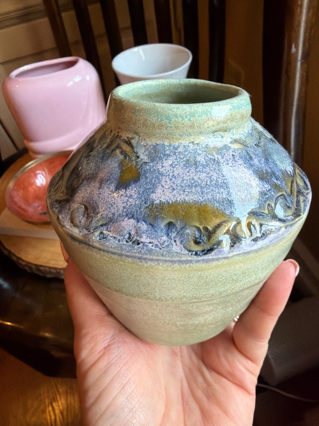 CHOICE 1~ GREEN AND BLUE POTTERY PIECE 4”x 3.5” for $6