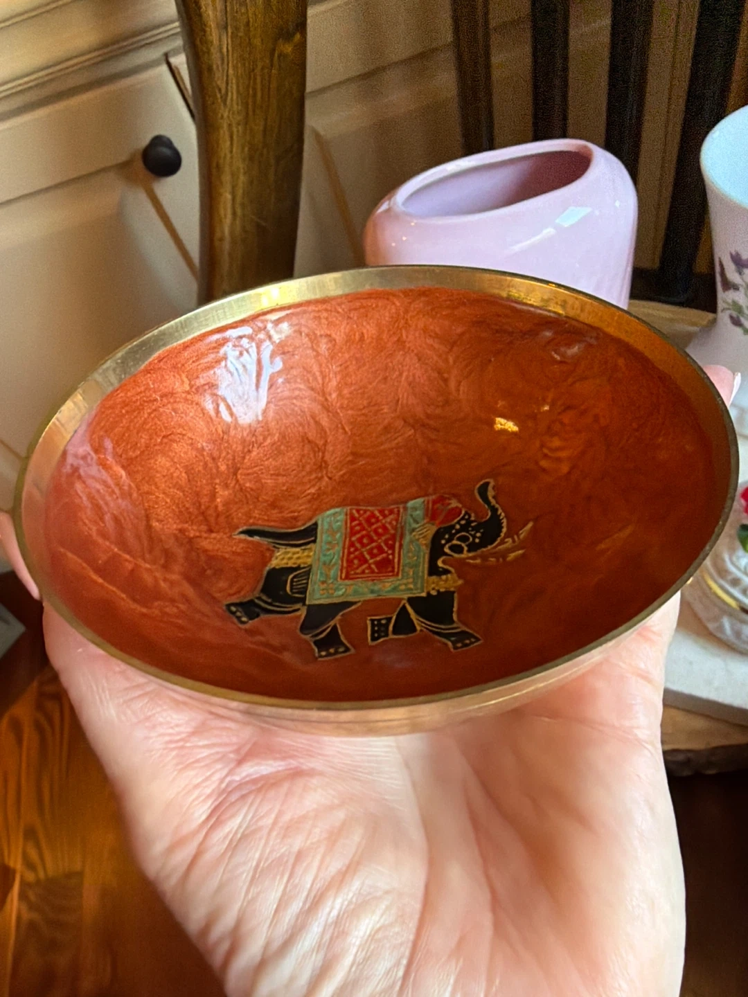 CHOICE 3~BRASS AND ENAMEL TEINKET DISH WITH AN ELEPHANT 4.5” x 2” for $6