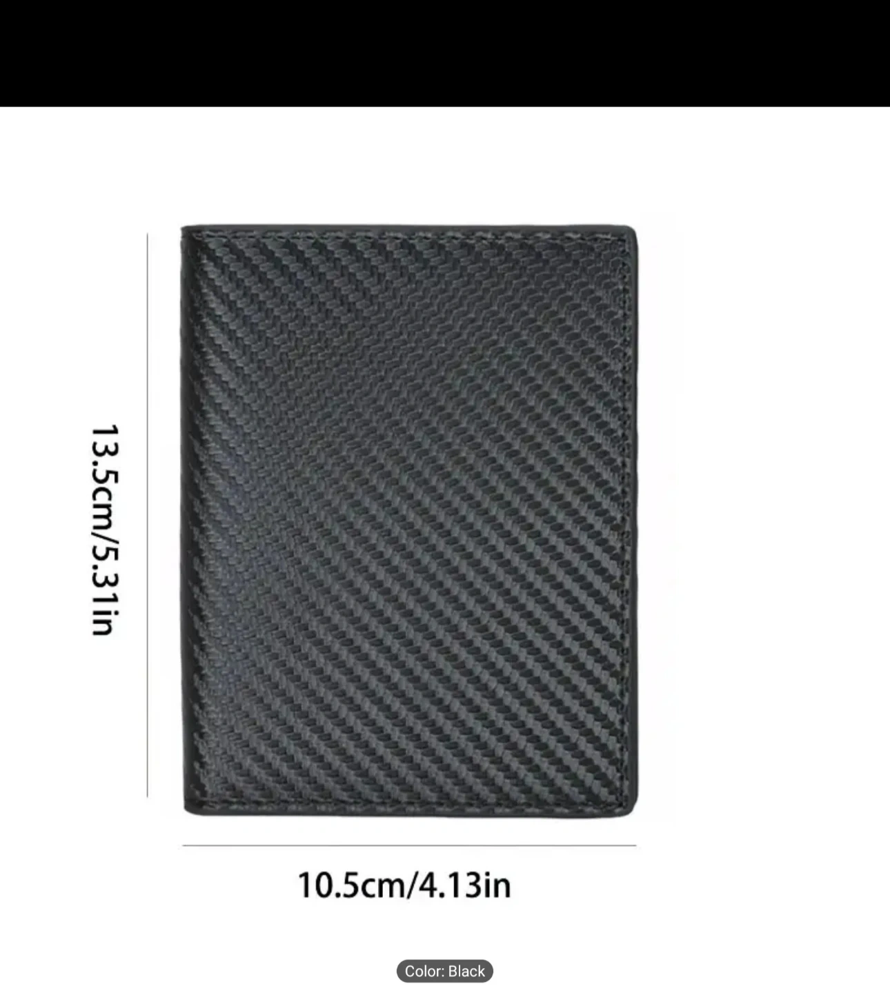 This black RFID blocking wallet holds multiple cards. It's made from a durable material and features a clear ID window. It measures 13.5cm by 10.5cm.
