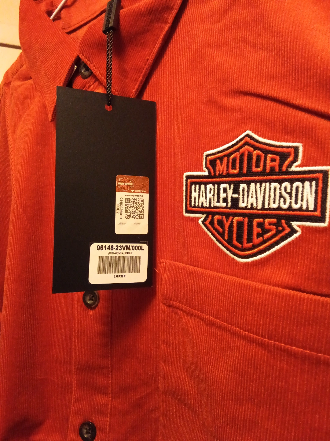 Authentic Harley-Davidson Men's Corduroy Shirt - Orange