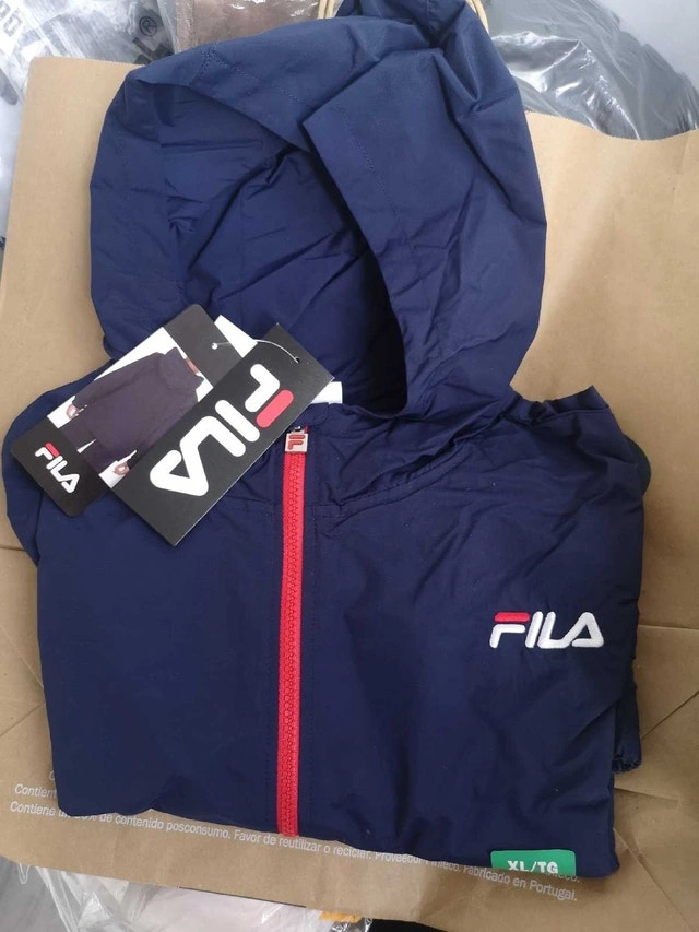 Looking for a jacket that's both practical and fashionable? Look no further! This Fila jacket is the perfect choice. If the ad is up, it's available!