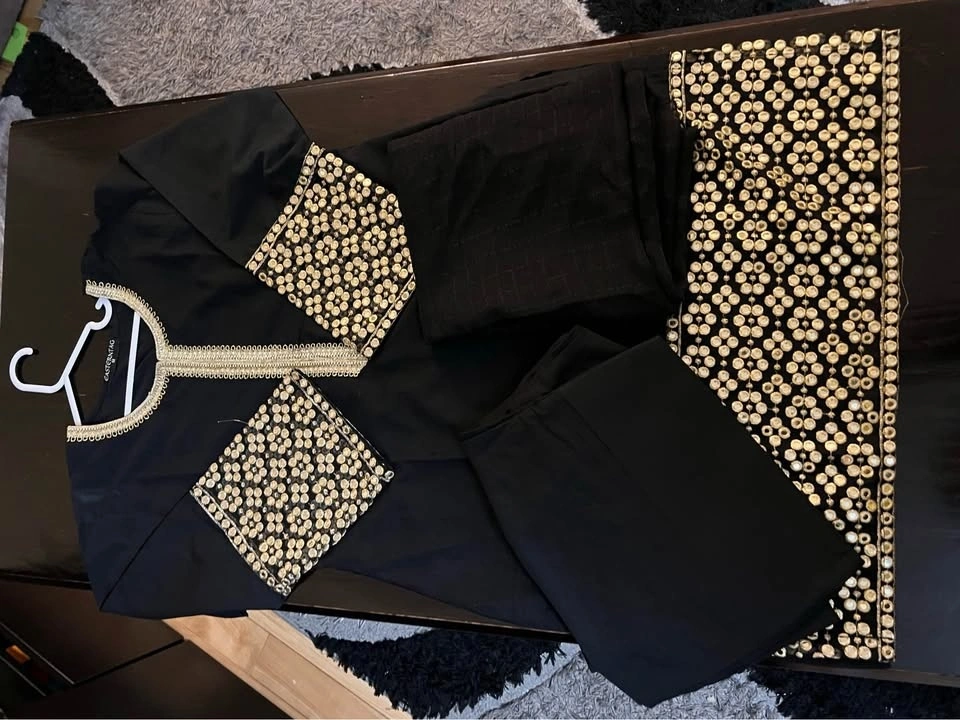 Beautiful black 3 pcs Mirror Work Suit with farshi shalwar