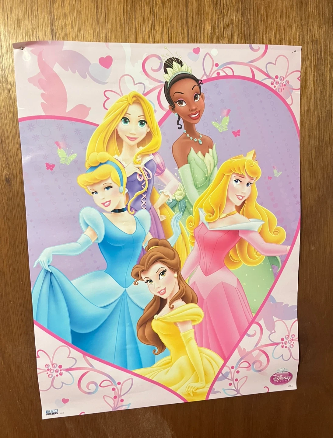 This Trends International poster features Cinderella, Aurora, Tiana, Rapunzel, and Belle. It measures 18 by 24 inches. Great for a princess fan's room!