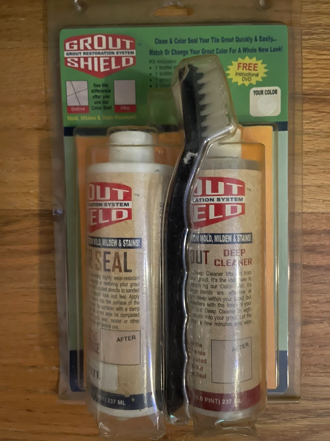 NEW; plastic exterior discolored but product is brand new! Works great. Bought too much! This kit includes Grout Deep Cleaner and Grout Color Seal. It's designed to clean and seal your tile grout. Each bottle contains 237 ML.🥕
