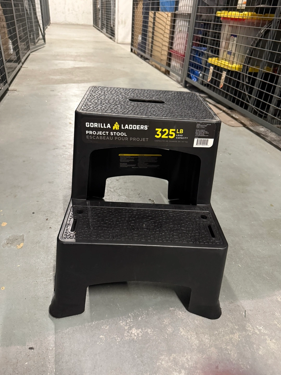 Selling a Gorilla Ladders project stool! It's black and has a 325lb load capacity. Great for reaching those high shelves or for any project that needs a little extra height