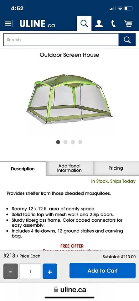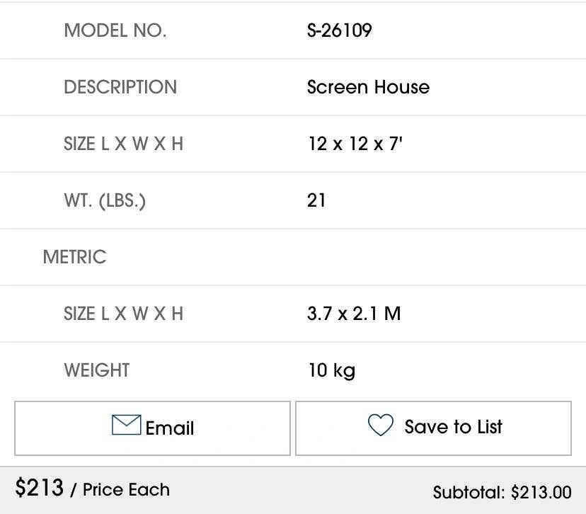 ULINE OUTDOOR SCREEN HOUSE FOR SALE